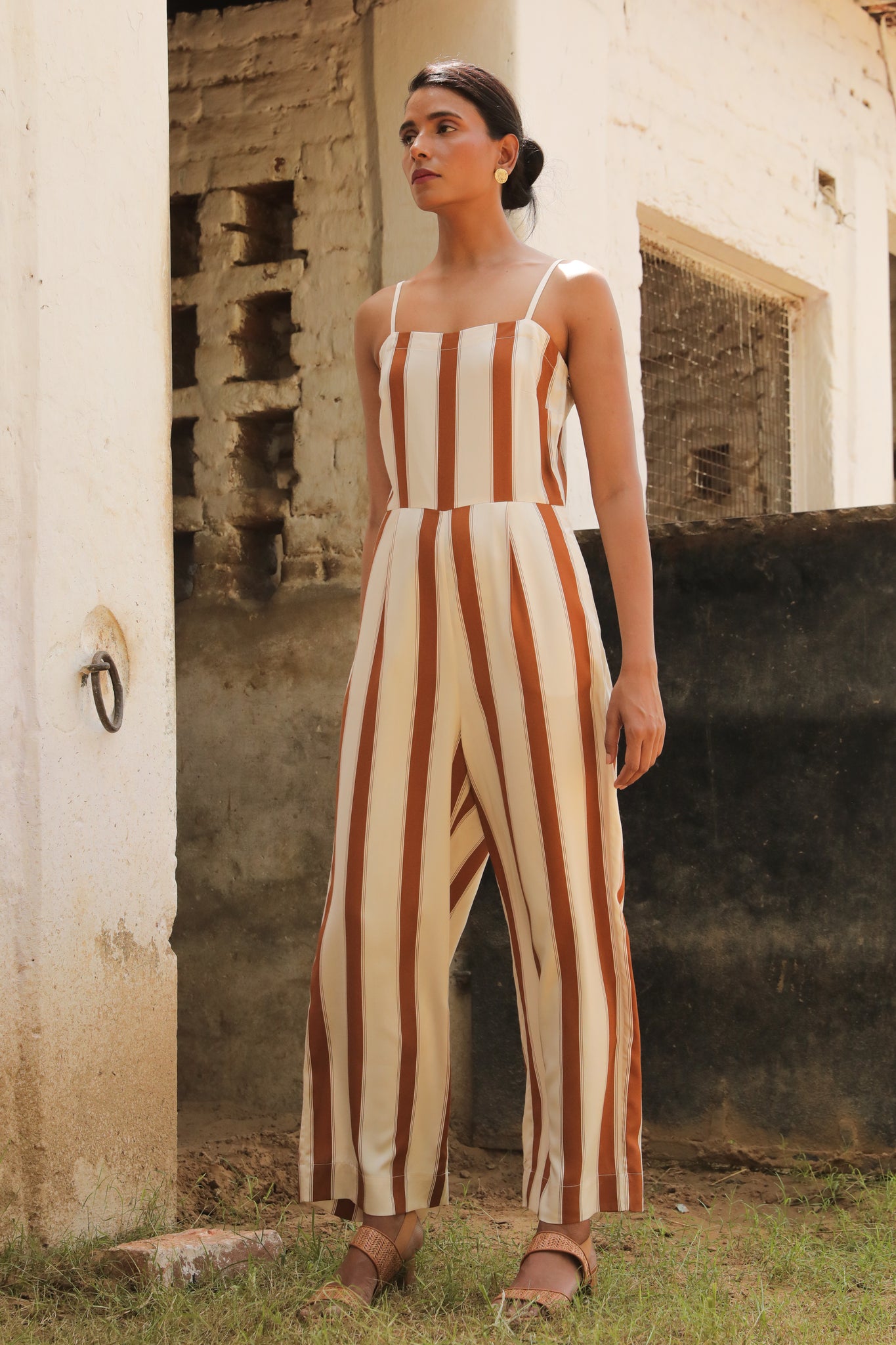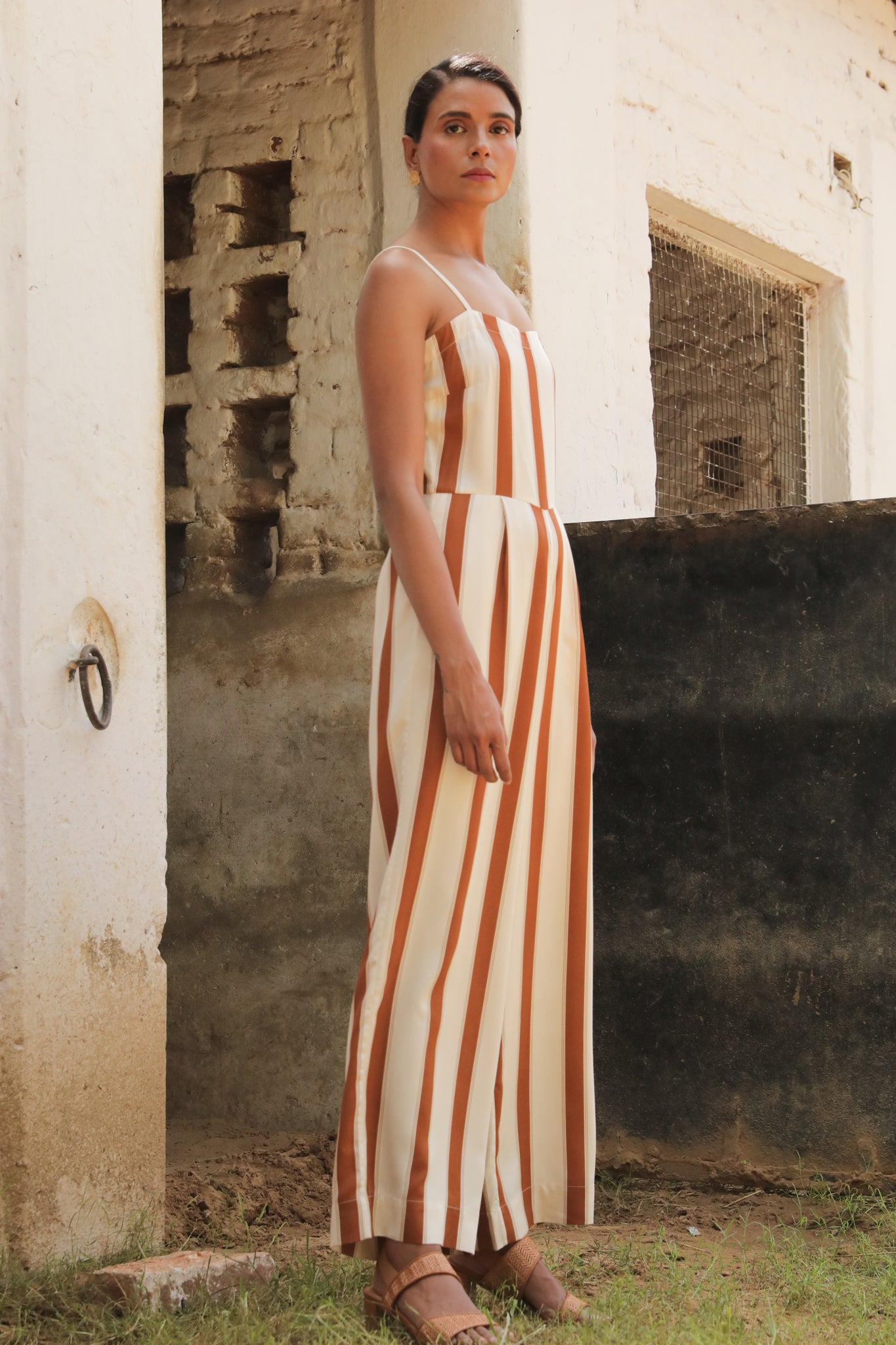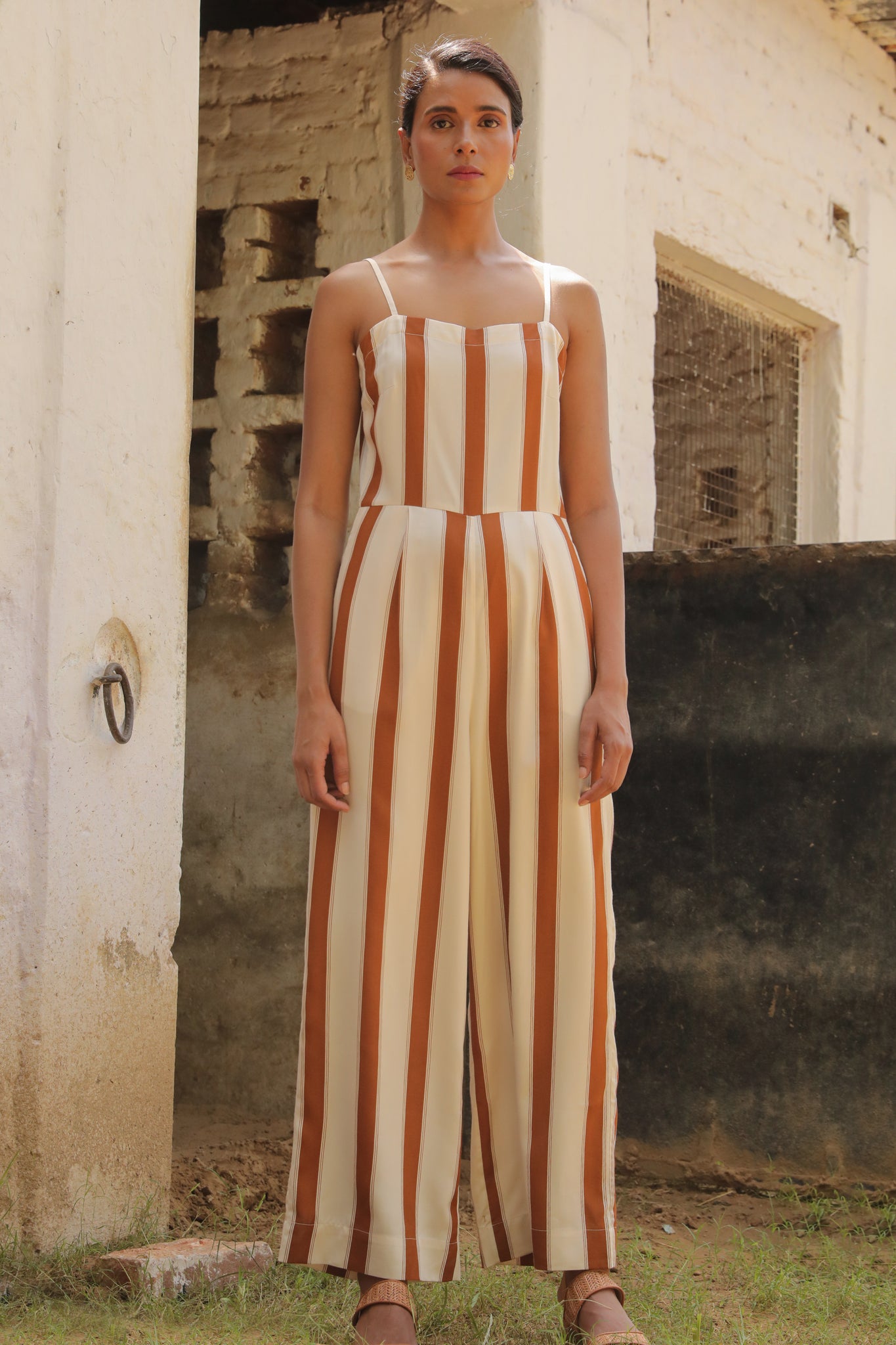 Luxe tencel with a bold stripe running through. Wide straight legs. Adjustable straps for preferred fit. Dart pleat at the waist. In-seam pockets. Side zip fastening for easy wear.