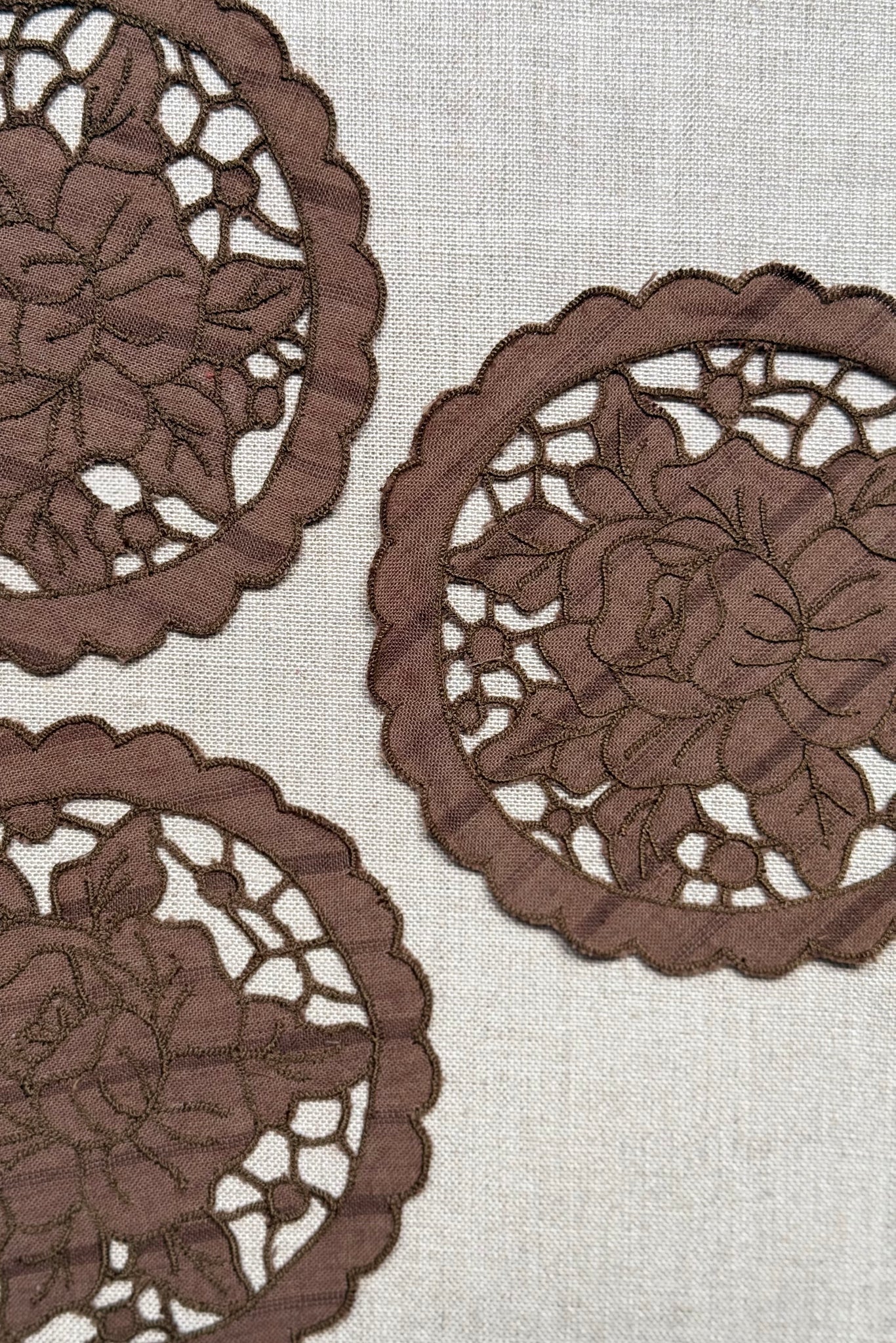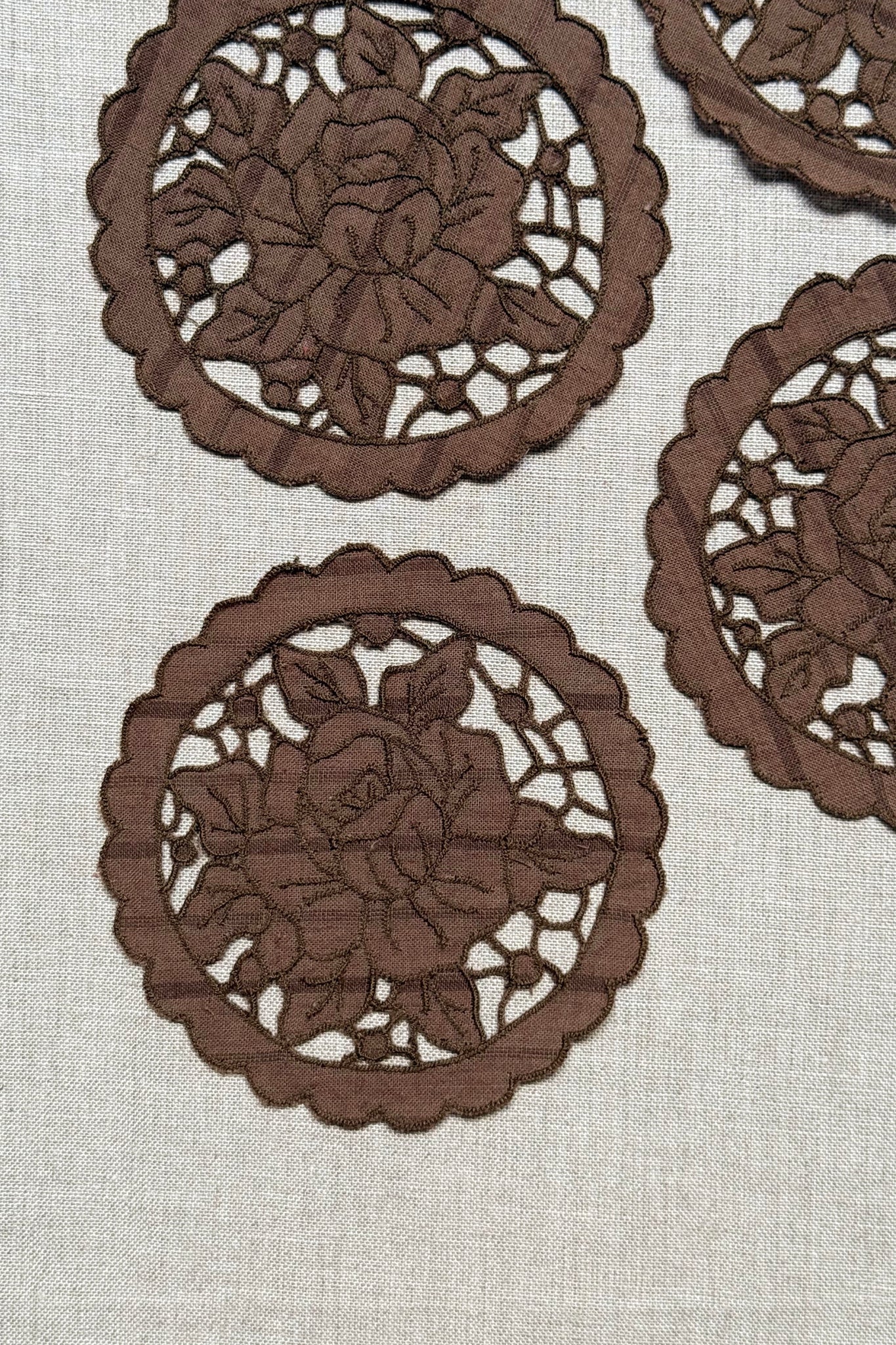 These hand-embroidered coasters combine practicality with artistry, making them perfect for gifting or enhancing your table decor.
