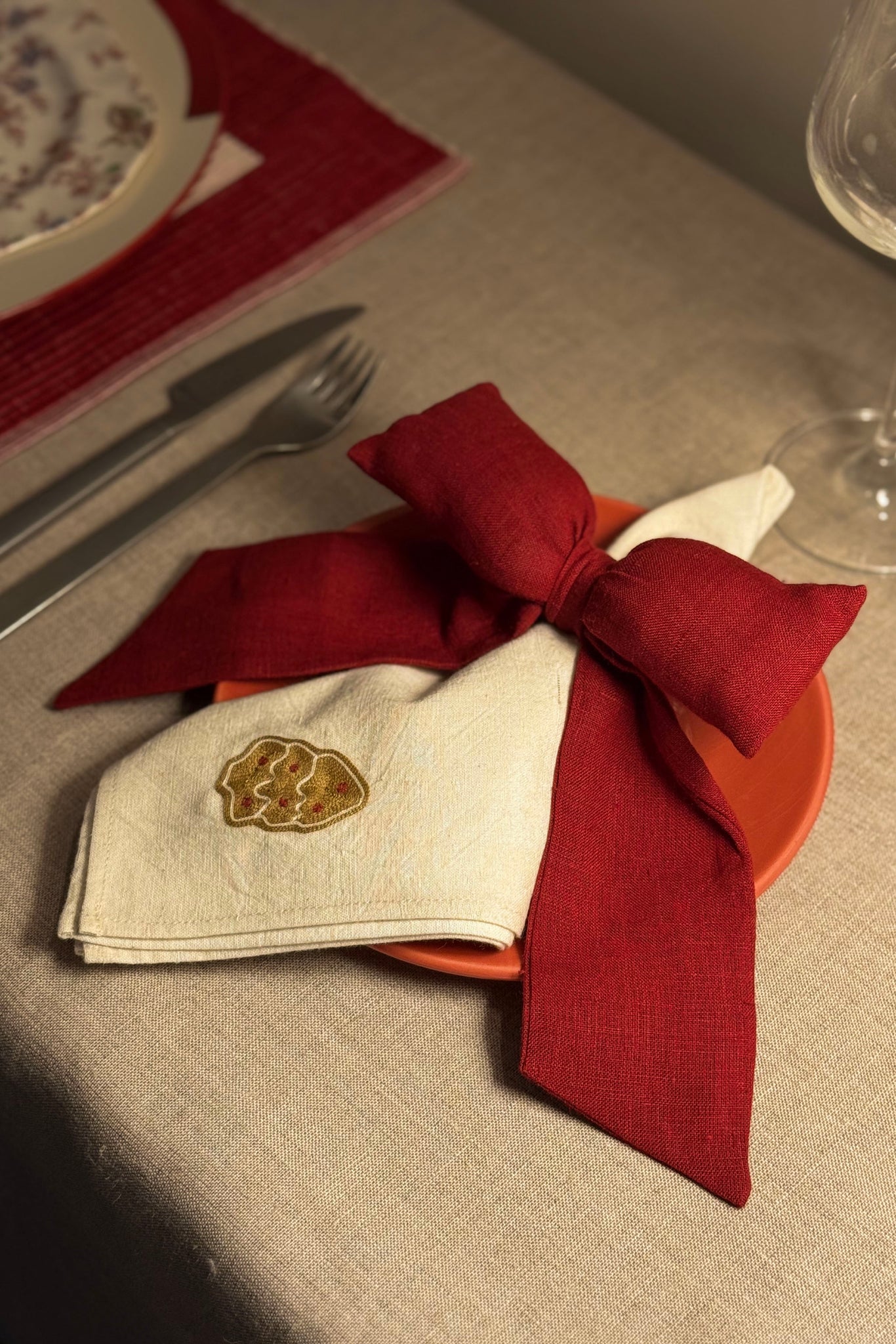 This 16" x 16" hand-embroidered Christmas napkin brings artisanal charm to your holiday table, perfect for seasonal celebrations.