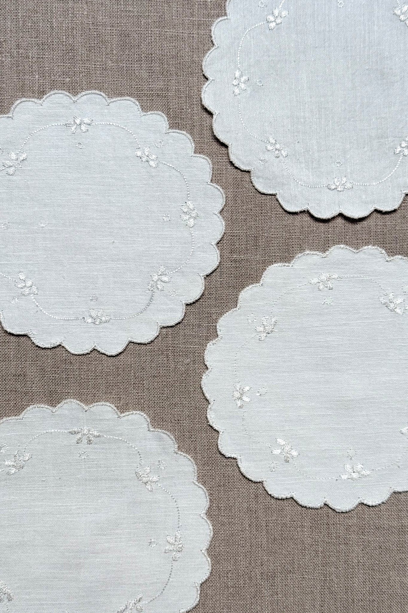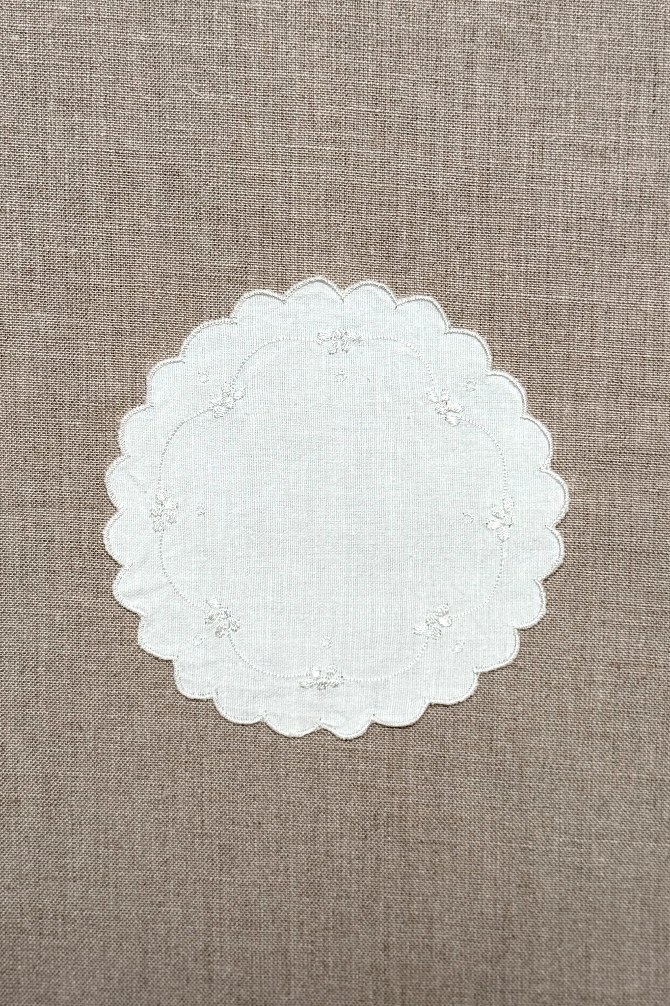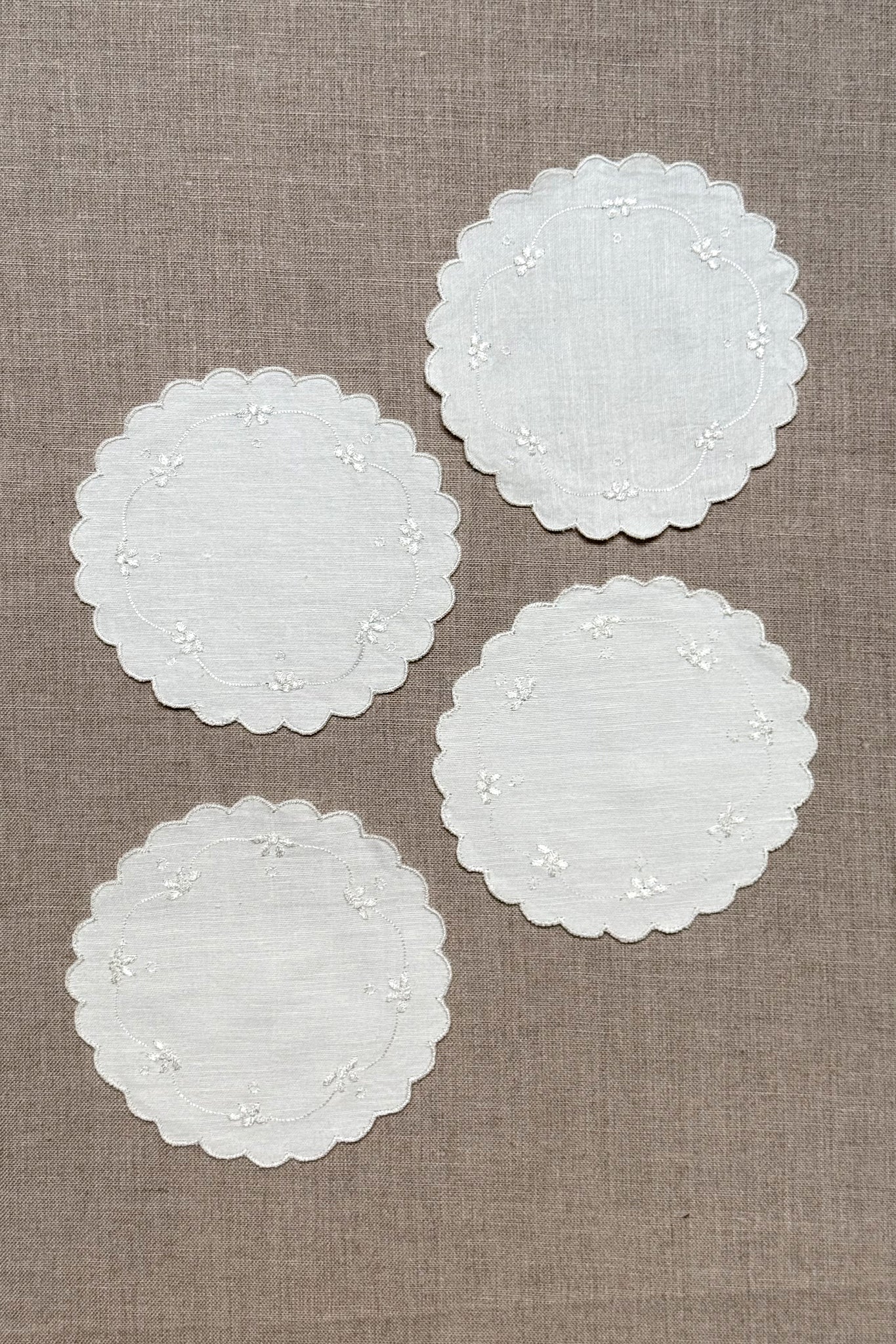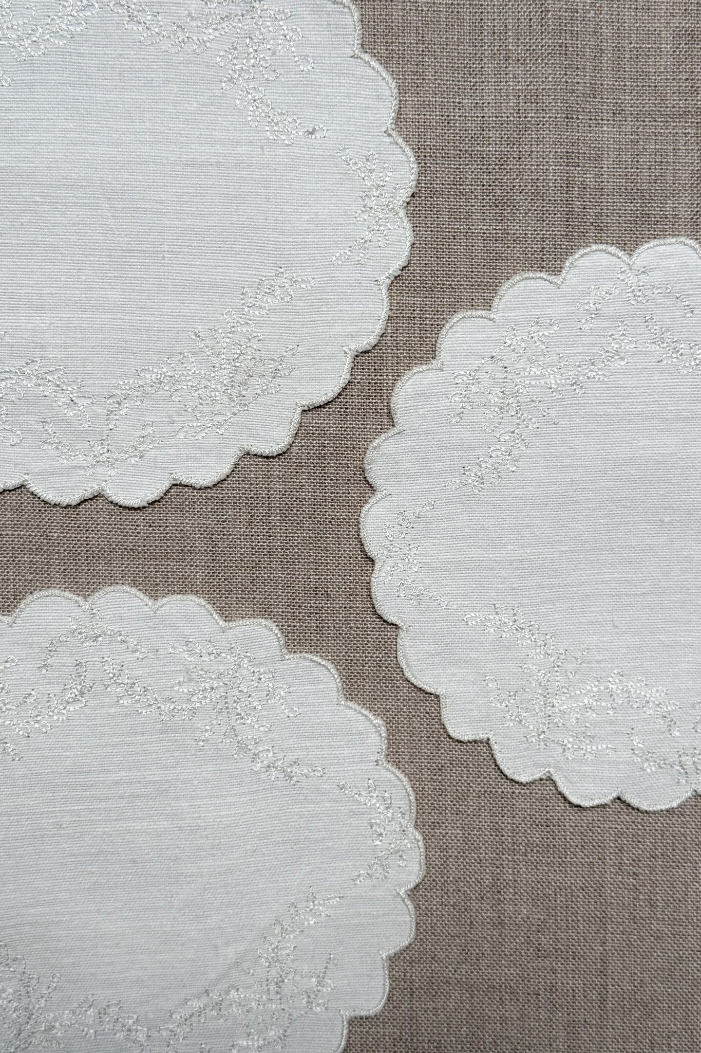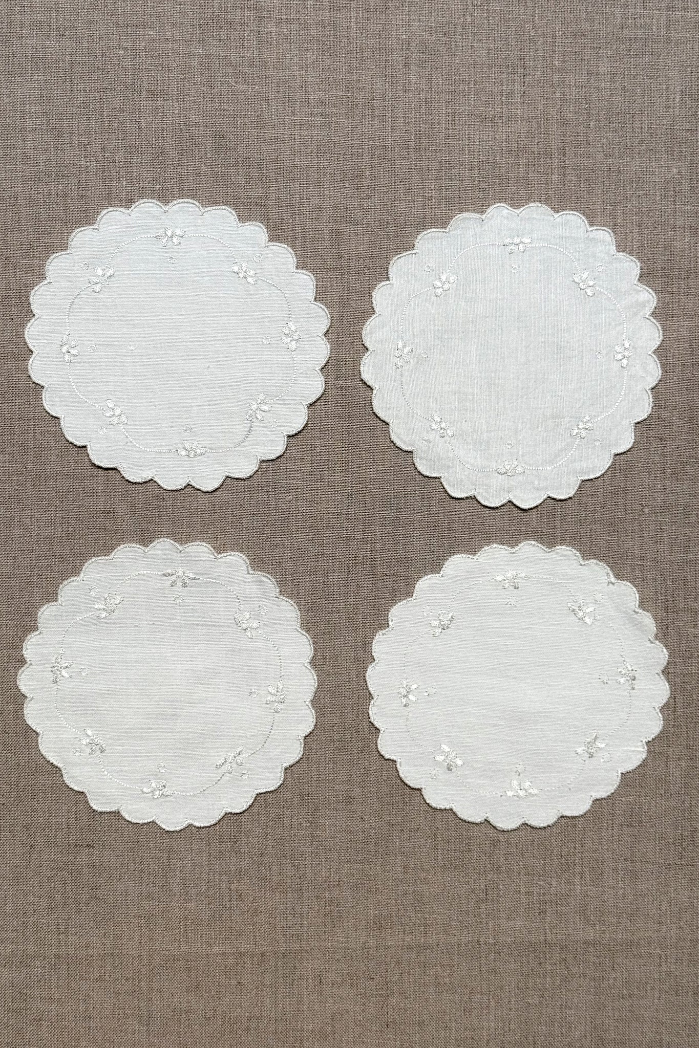 White Embroidered Cotton Coasters - Set of 2