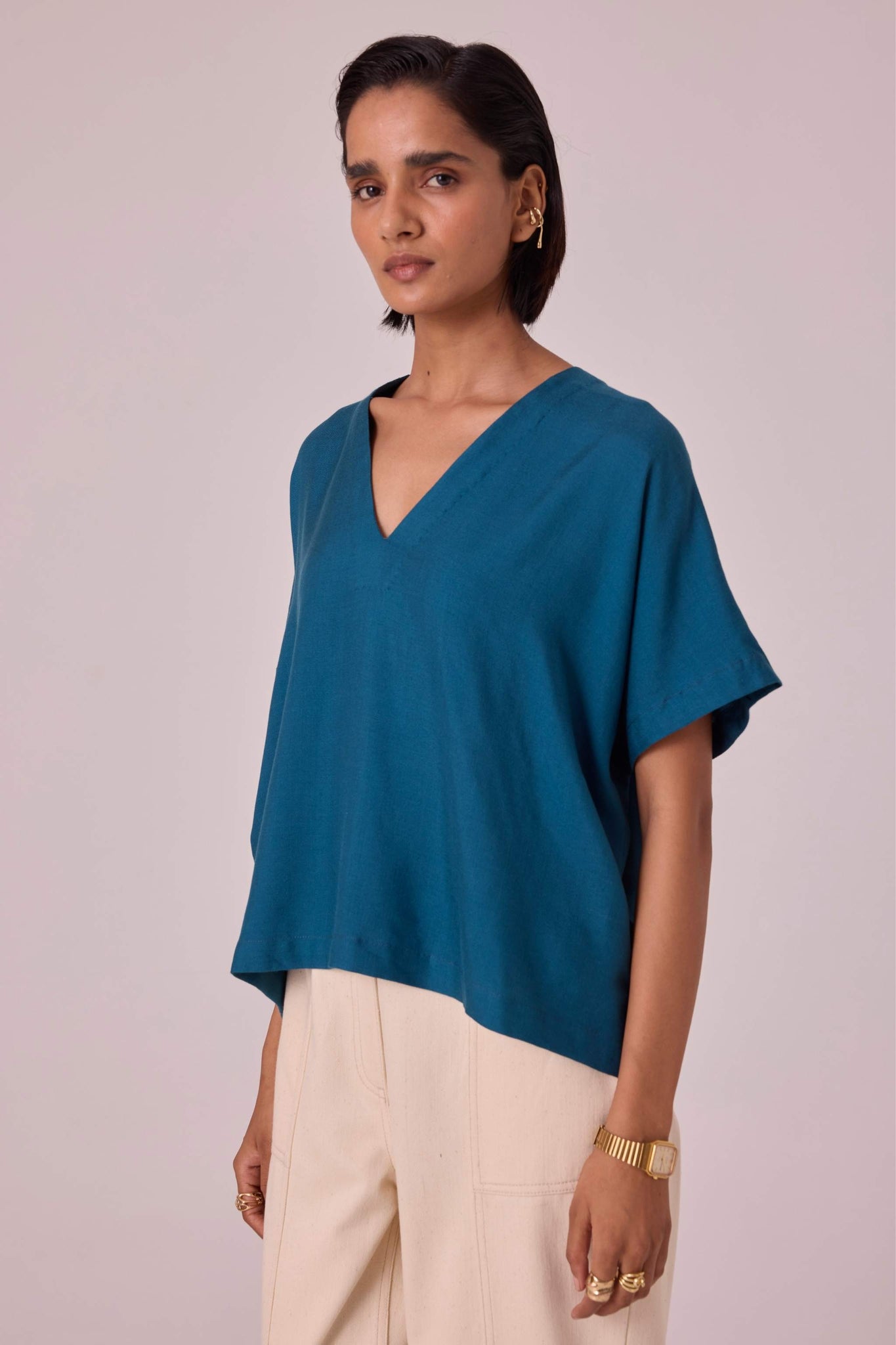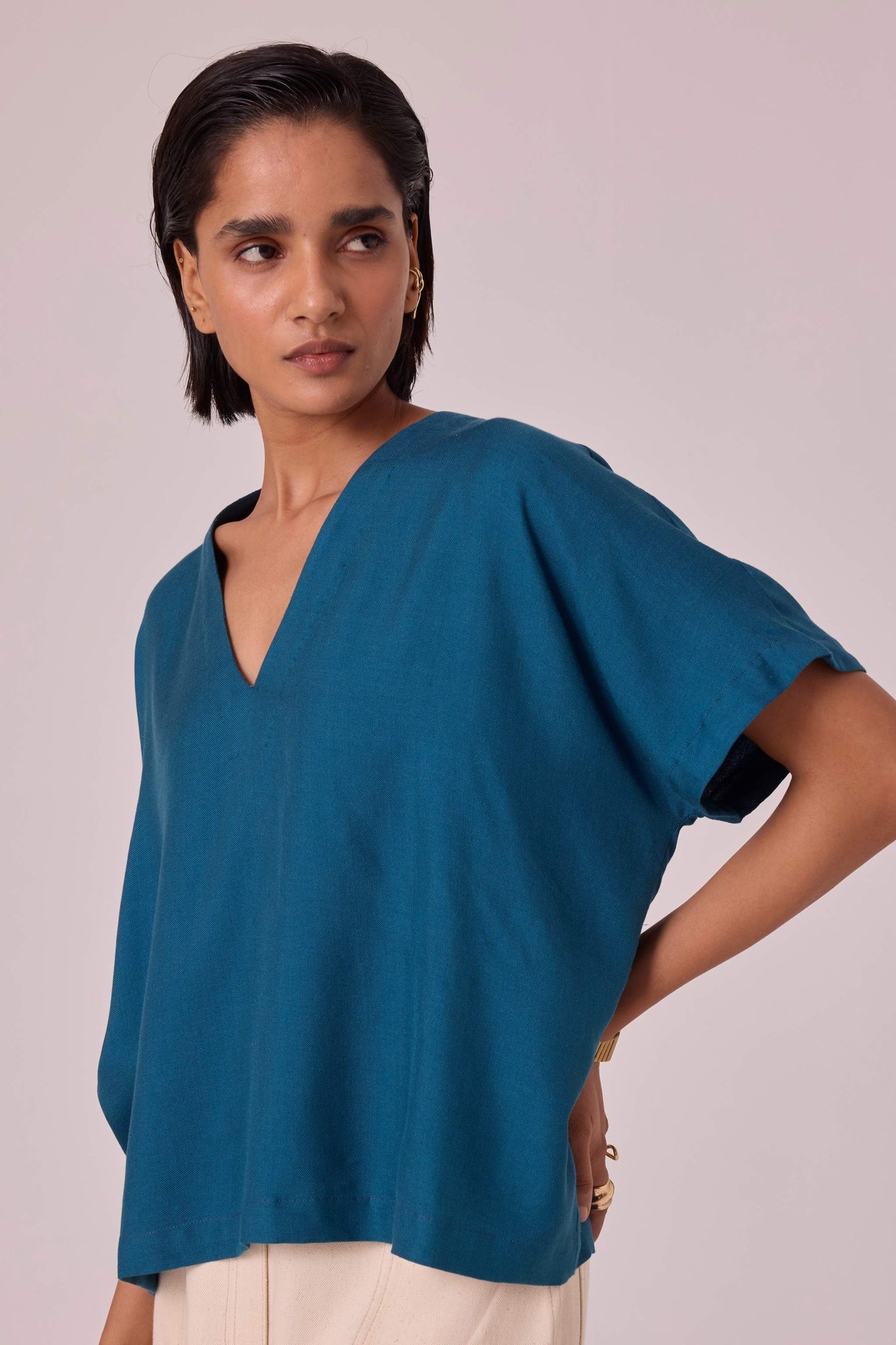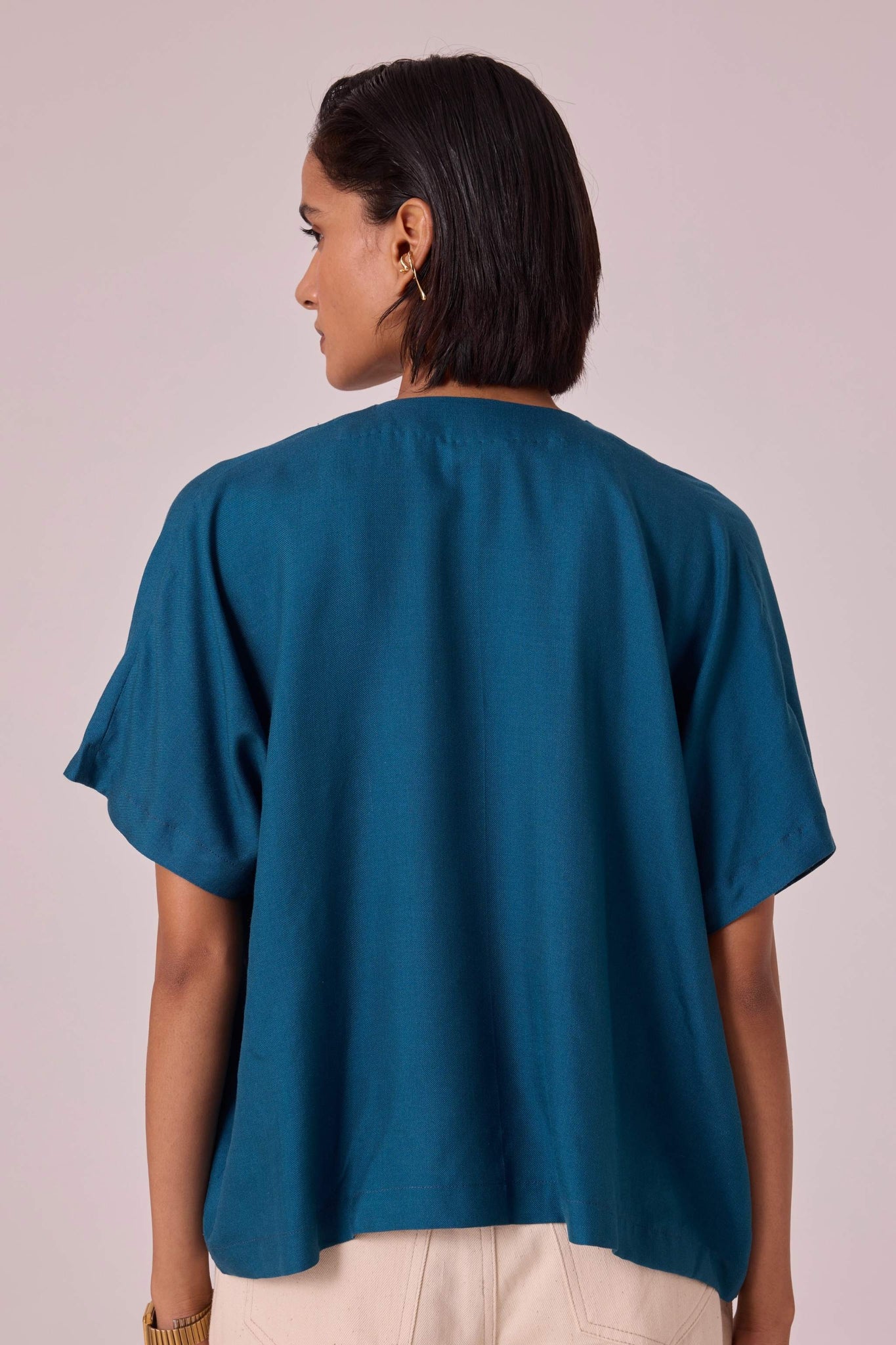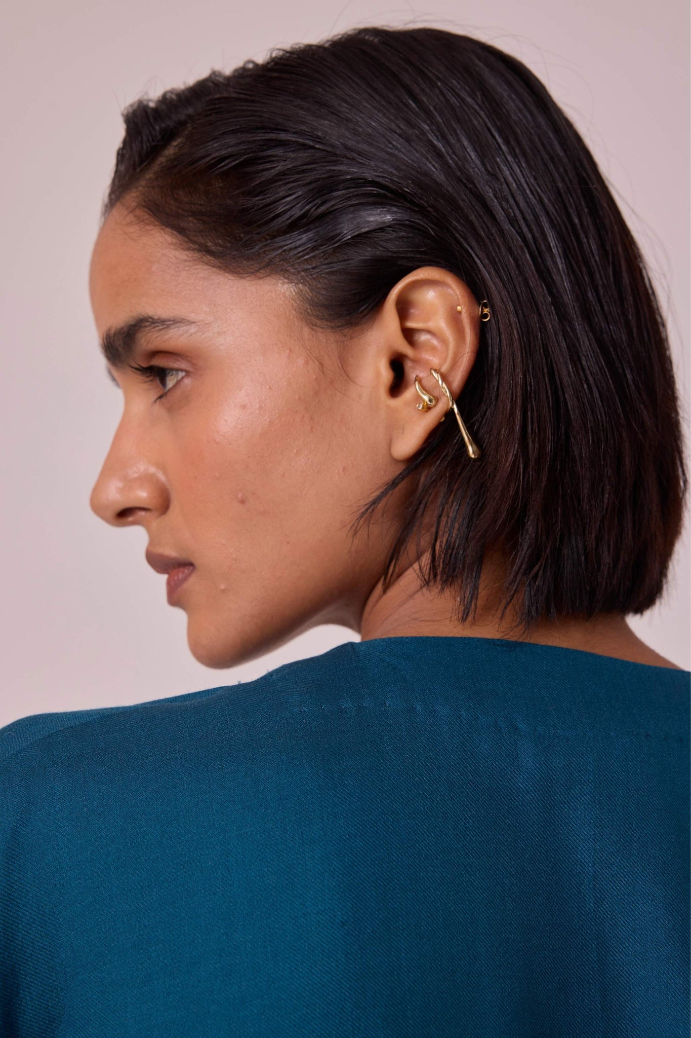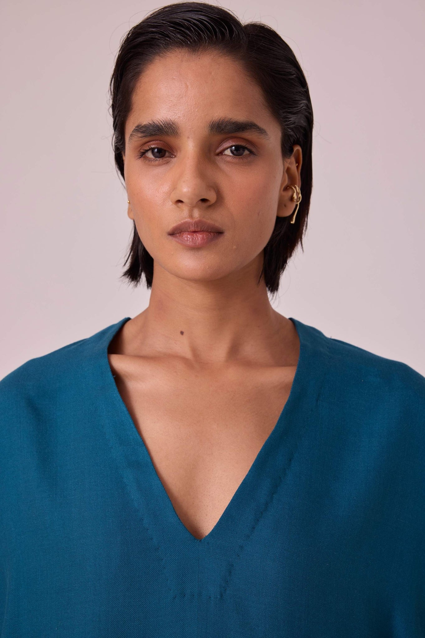 - Wide cuffed sleeve hangs loosely below the shoulder