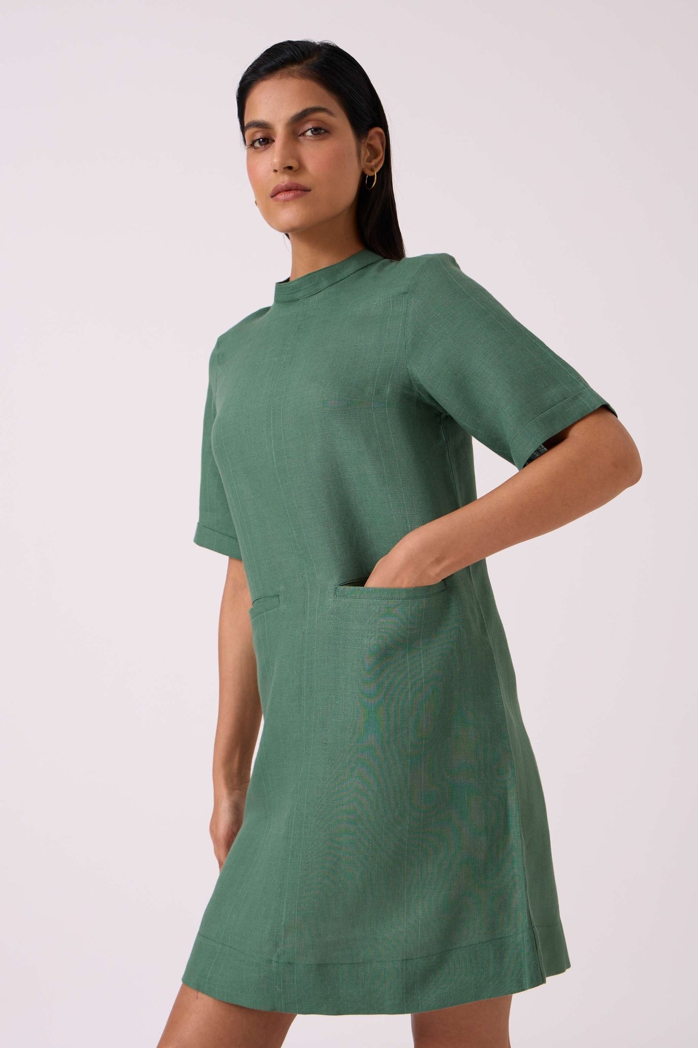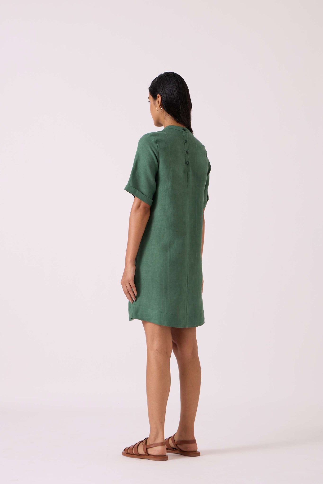Tula Green Linen Shift Dress