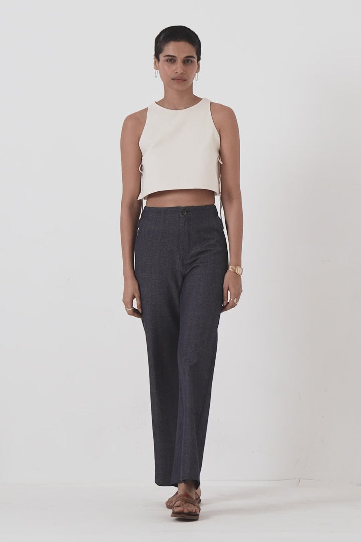 Tia Cropped Handspun Khadi Tie Top