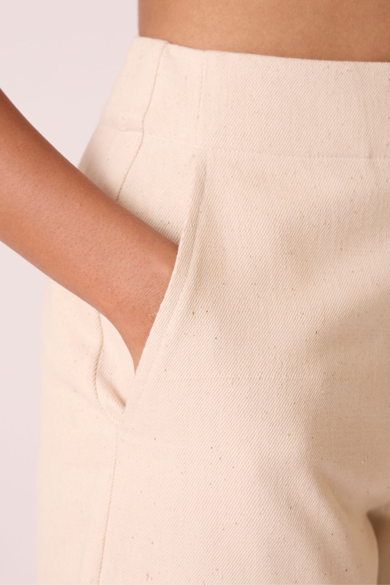 High-rise shorts in unbleached denim. Welt pockets at the back.