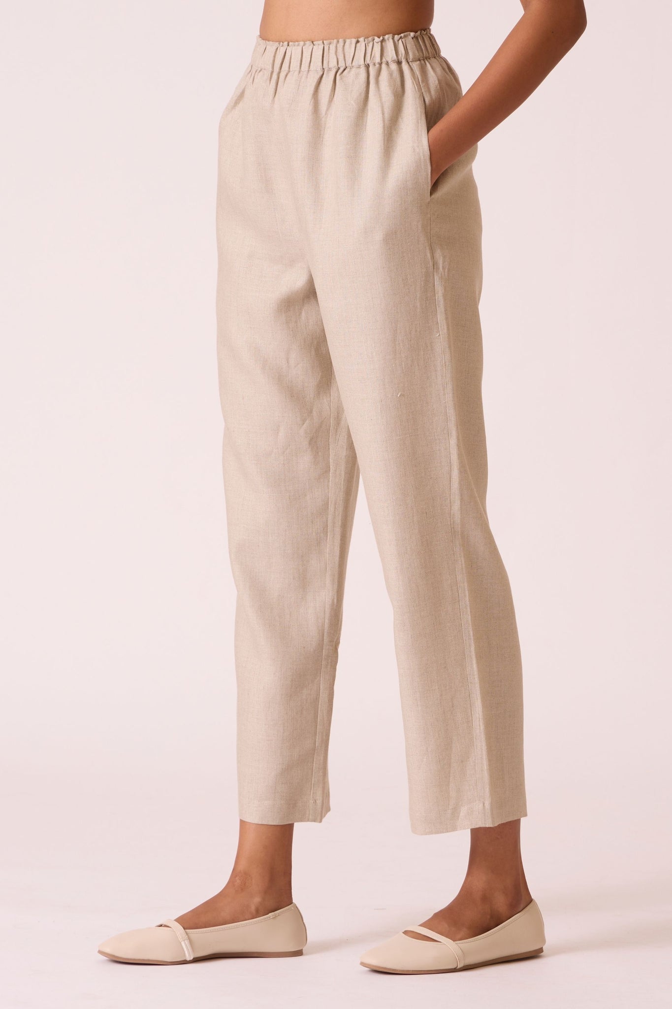 Torri Beige Linen Trousers