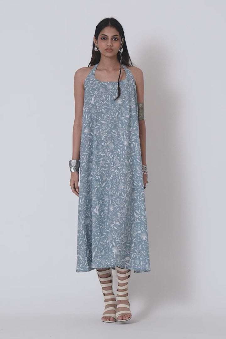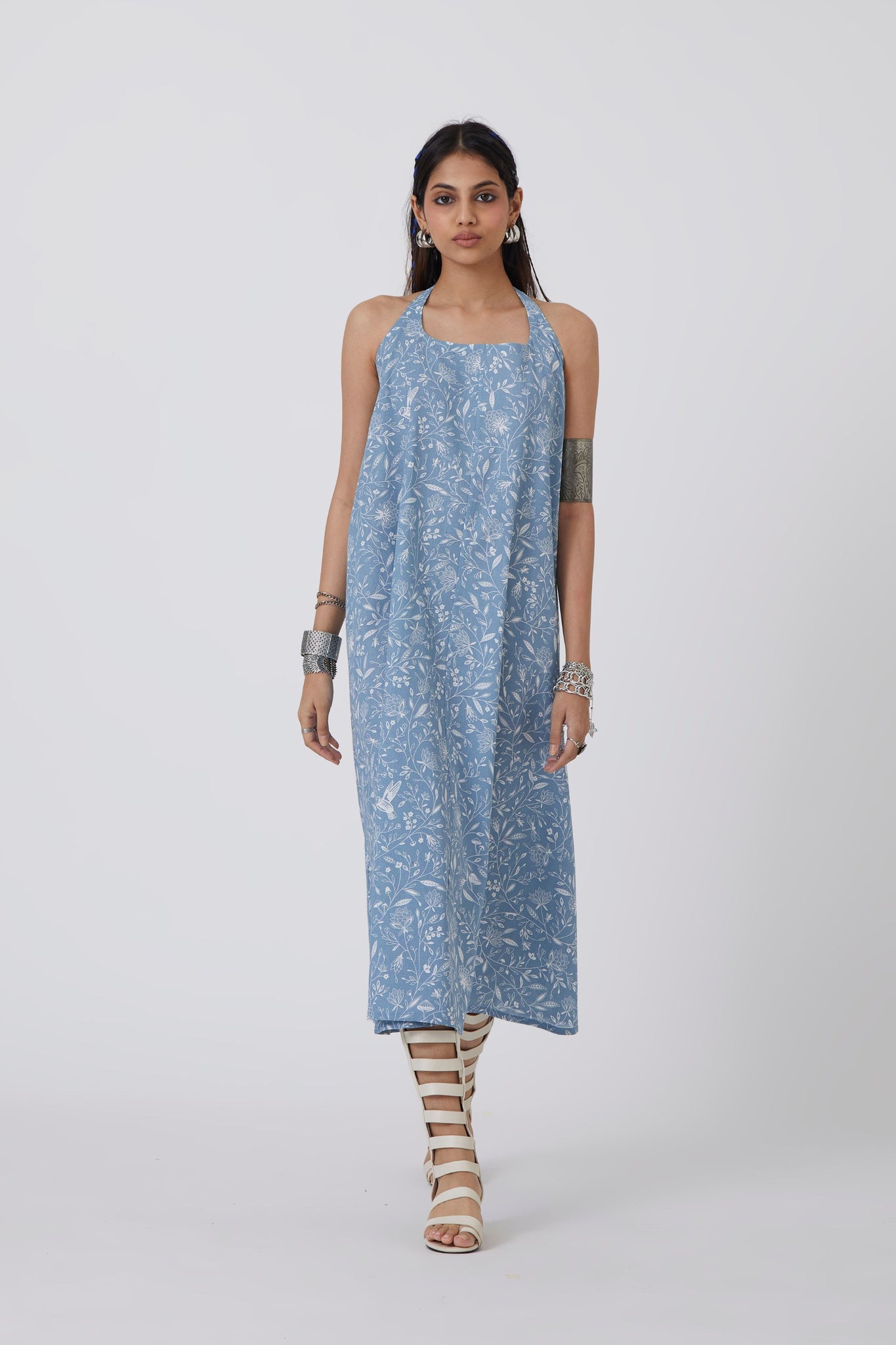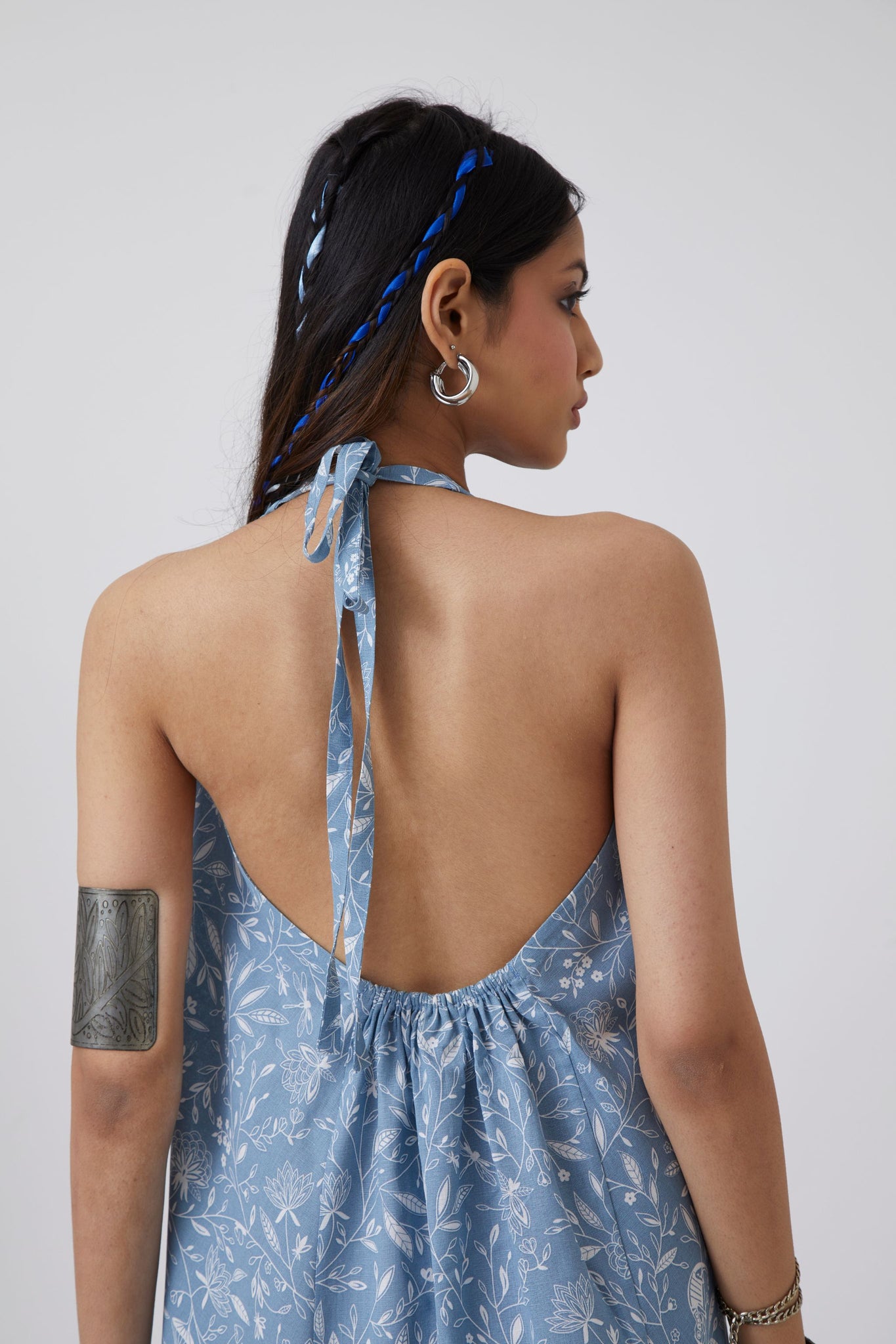 Truly effortless. Signature print halter neck dress. Elasticated back for proper fit. In-seam pockets.