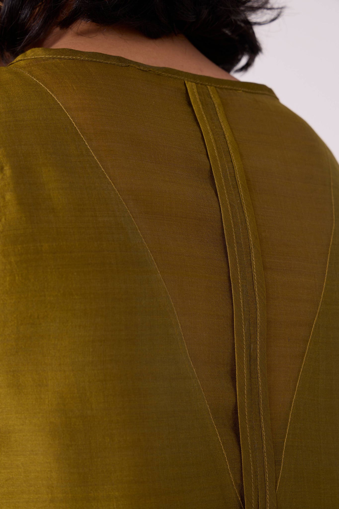 - Sheer V-neck at front and back