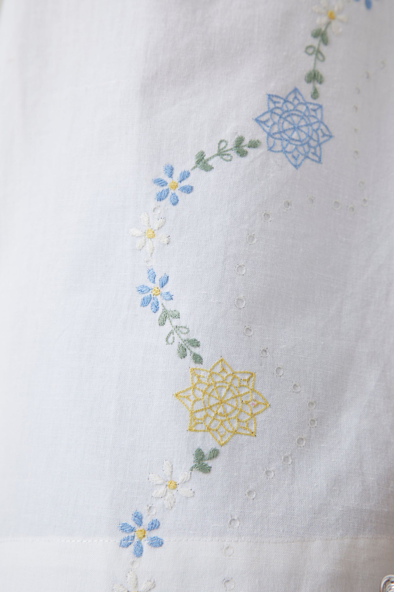 Hand embroidered by skilled artisans.