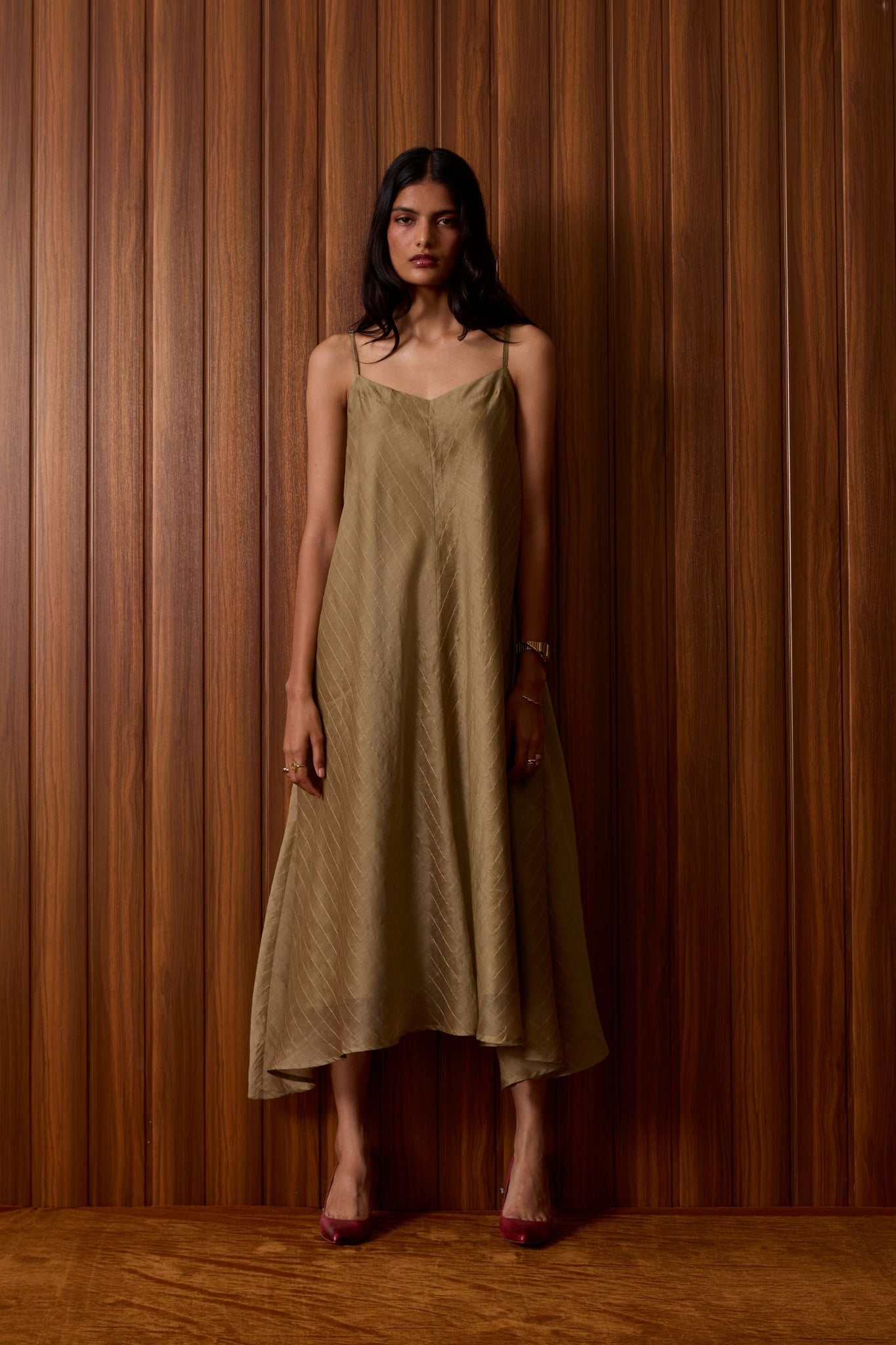 An easy sweep of fabric, cut with a handkerchief hem. Adjustable straps temper the flow with precision.