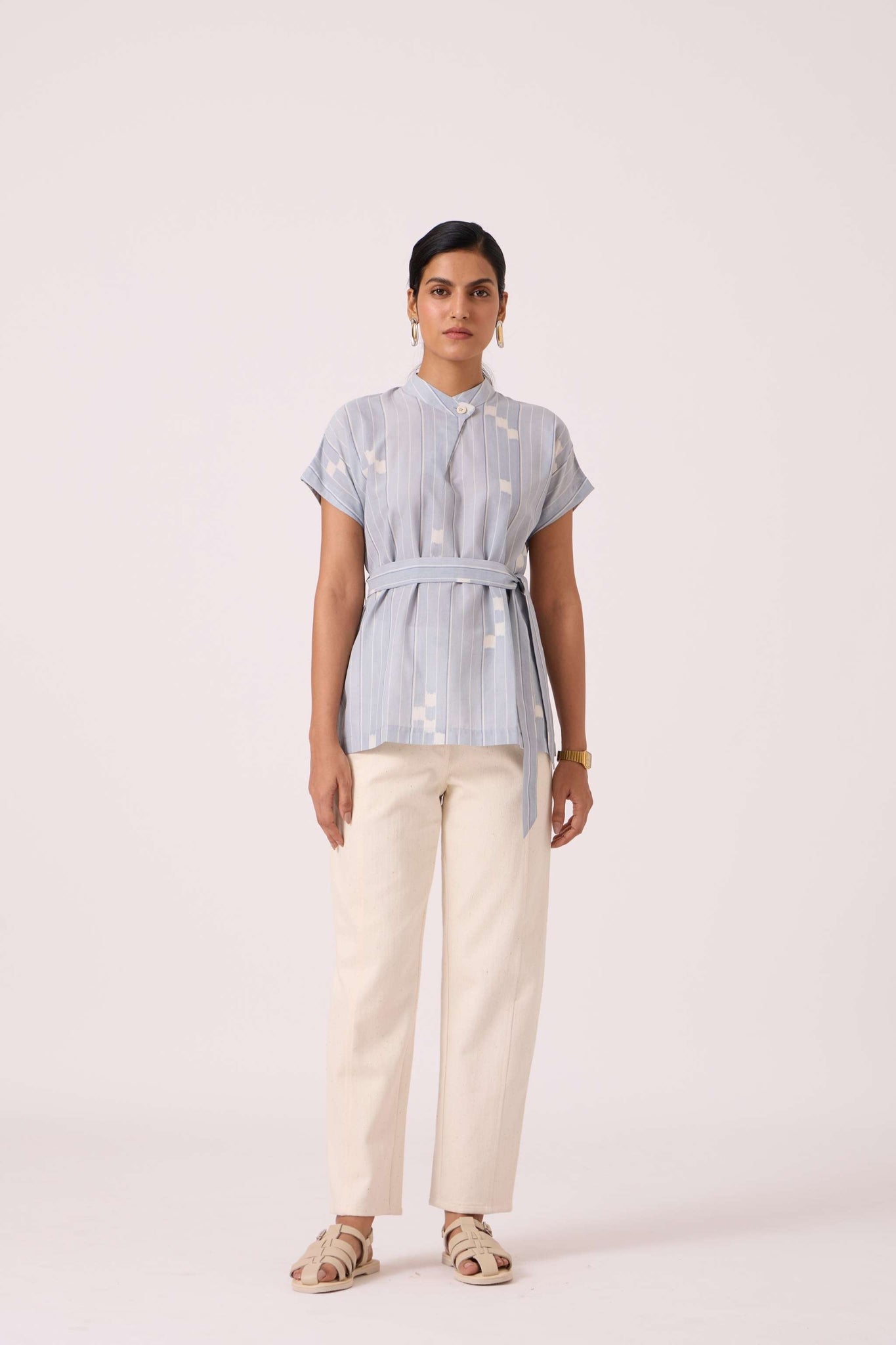 This Ikat design is developed in our studio and handwoven by artisans in Telangana. Slight irregularities are common and speak to the hand processes involved.