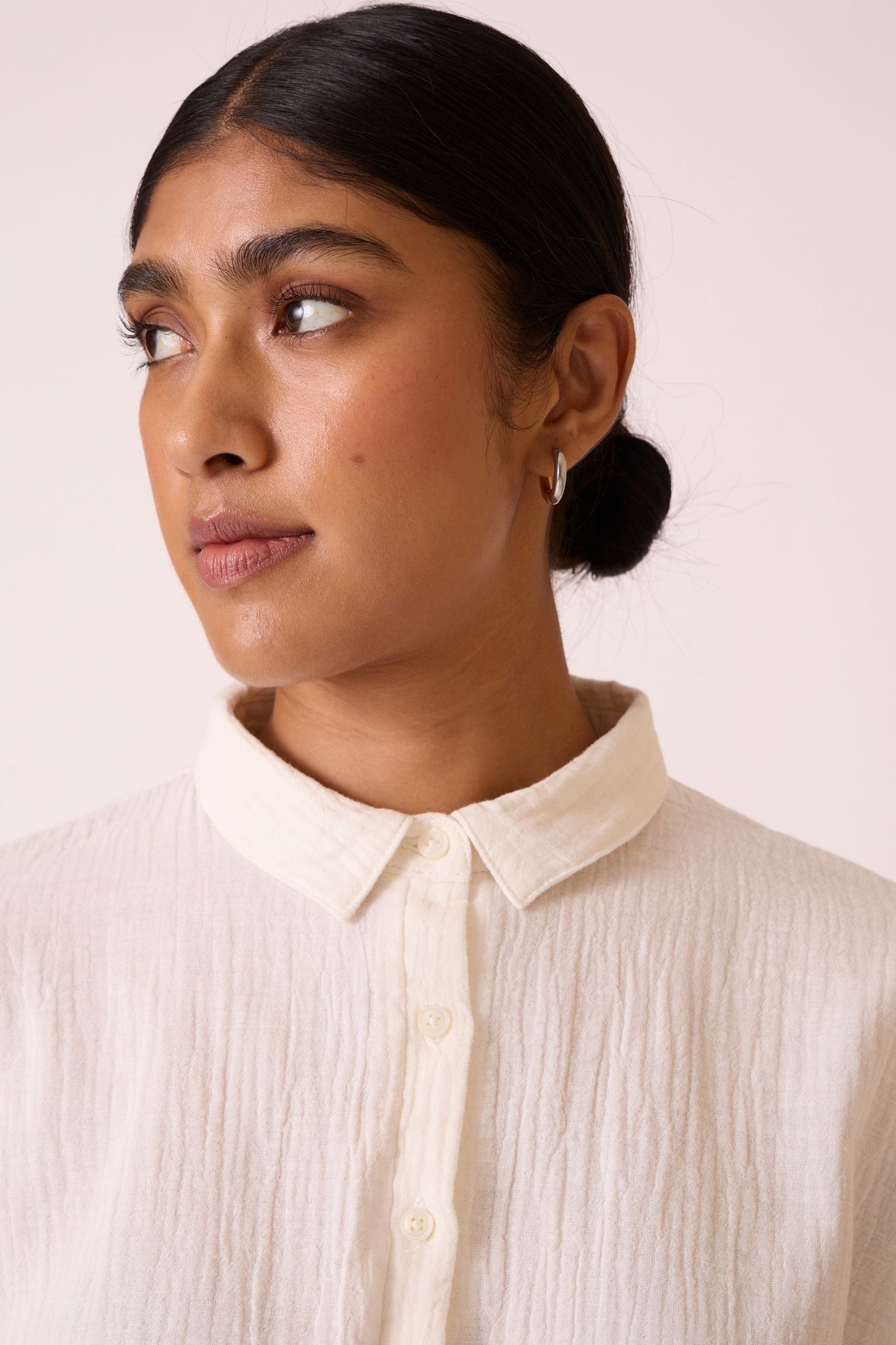 A relaxed-fit top with drop-down shoulders and summer sleeves made from crinkle cotton.