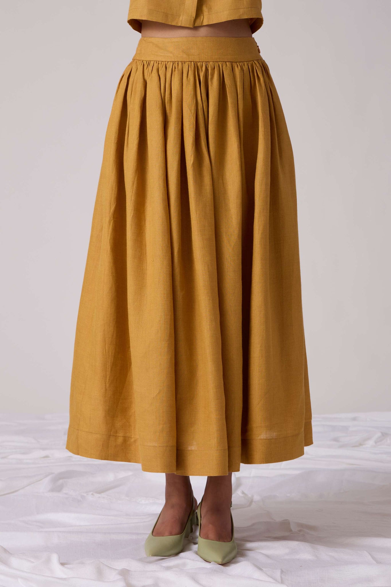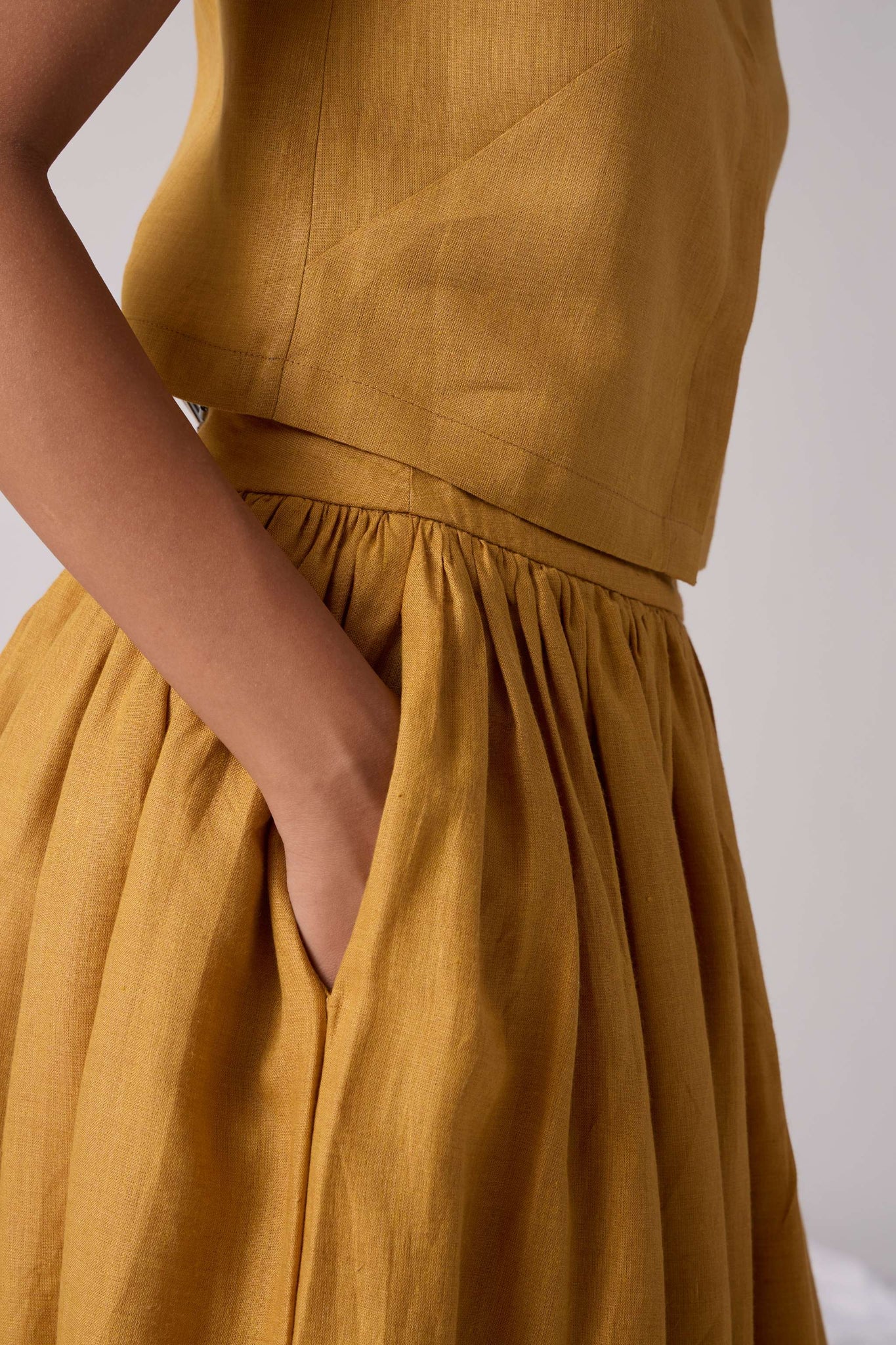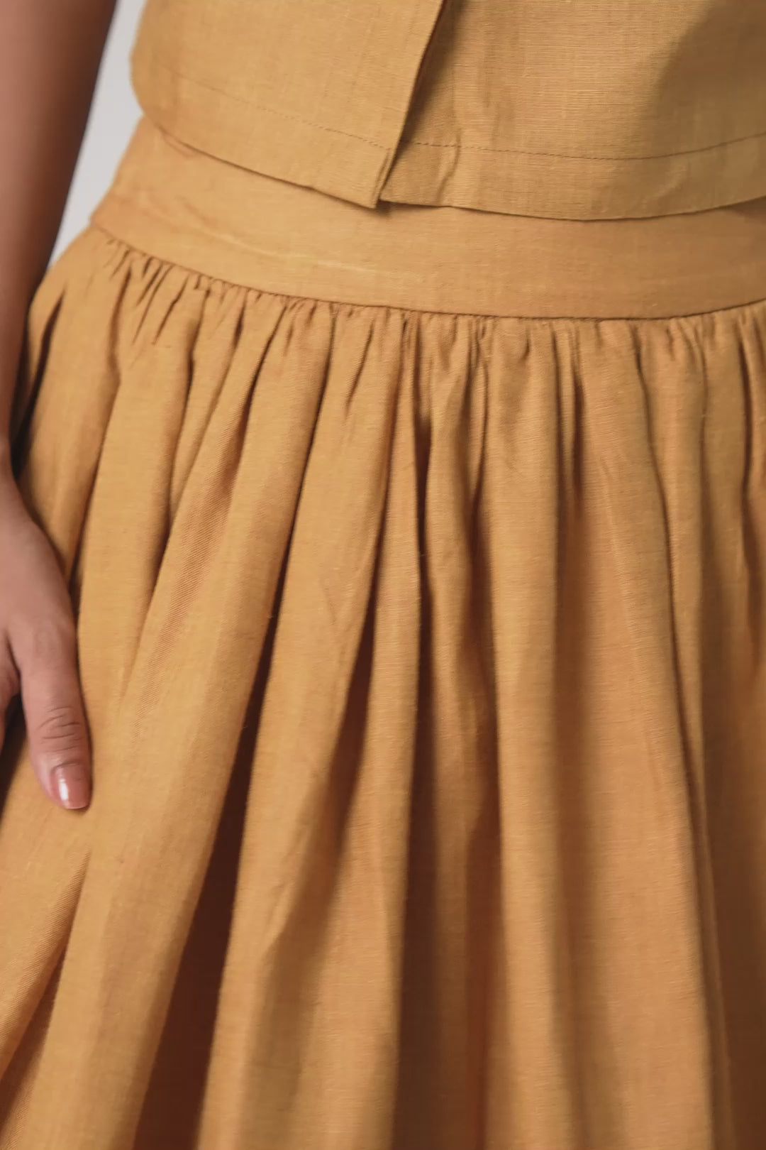 Elegant skirt to take you from daytime soirees to cocktail evenings. Premium cotton quality. Side zip fastening with gentle gathers around the waist. In-seam pockets.