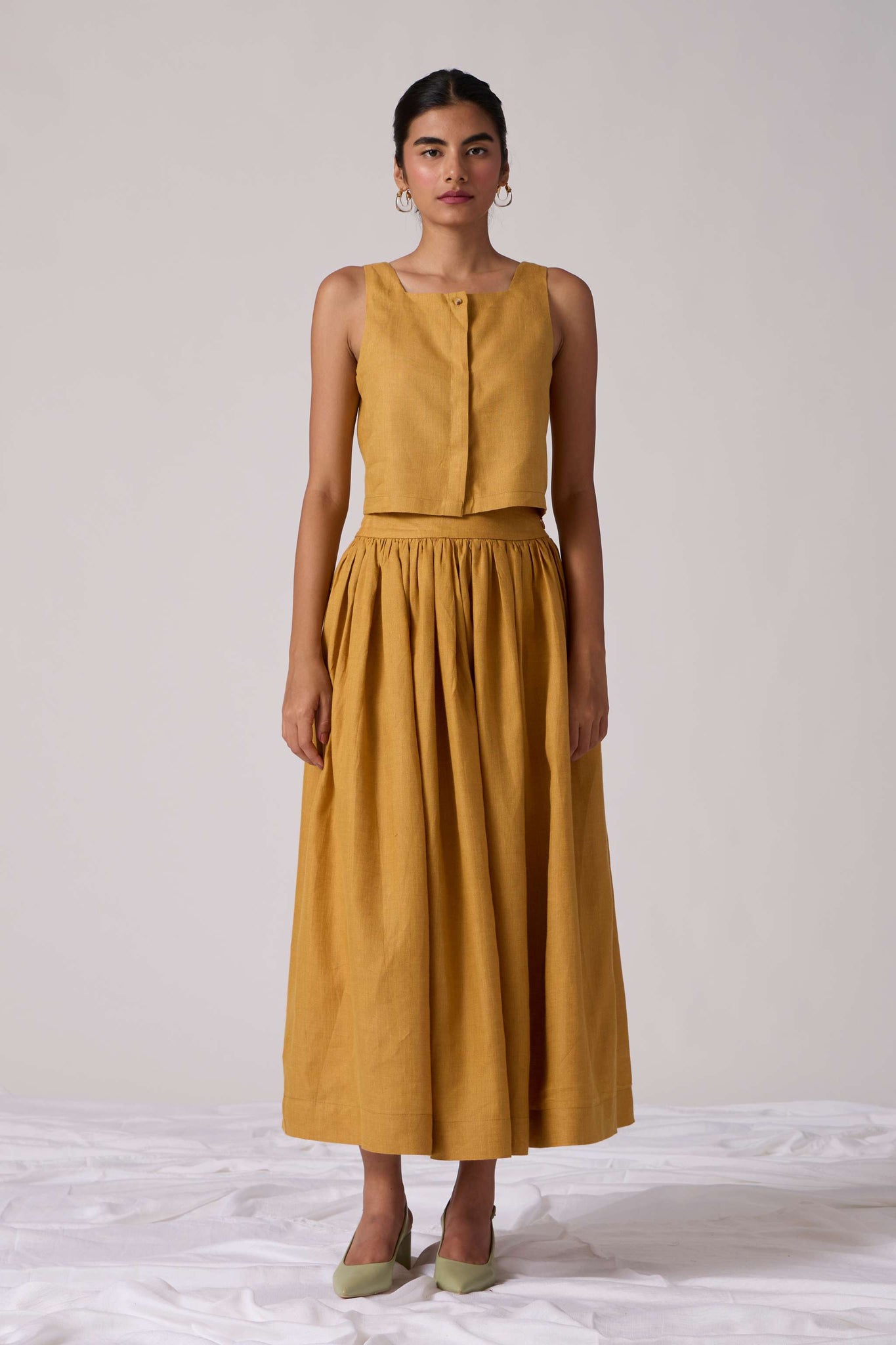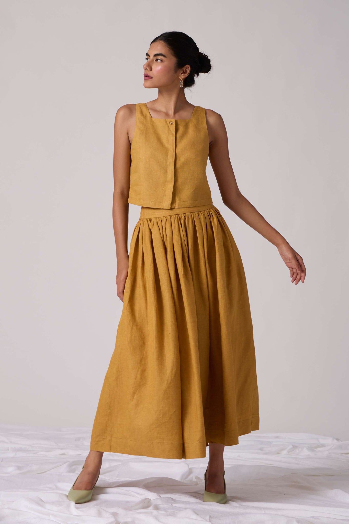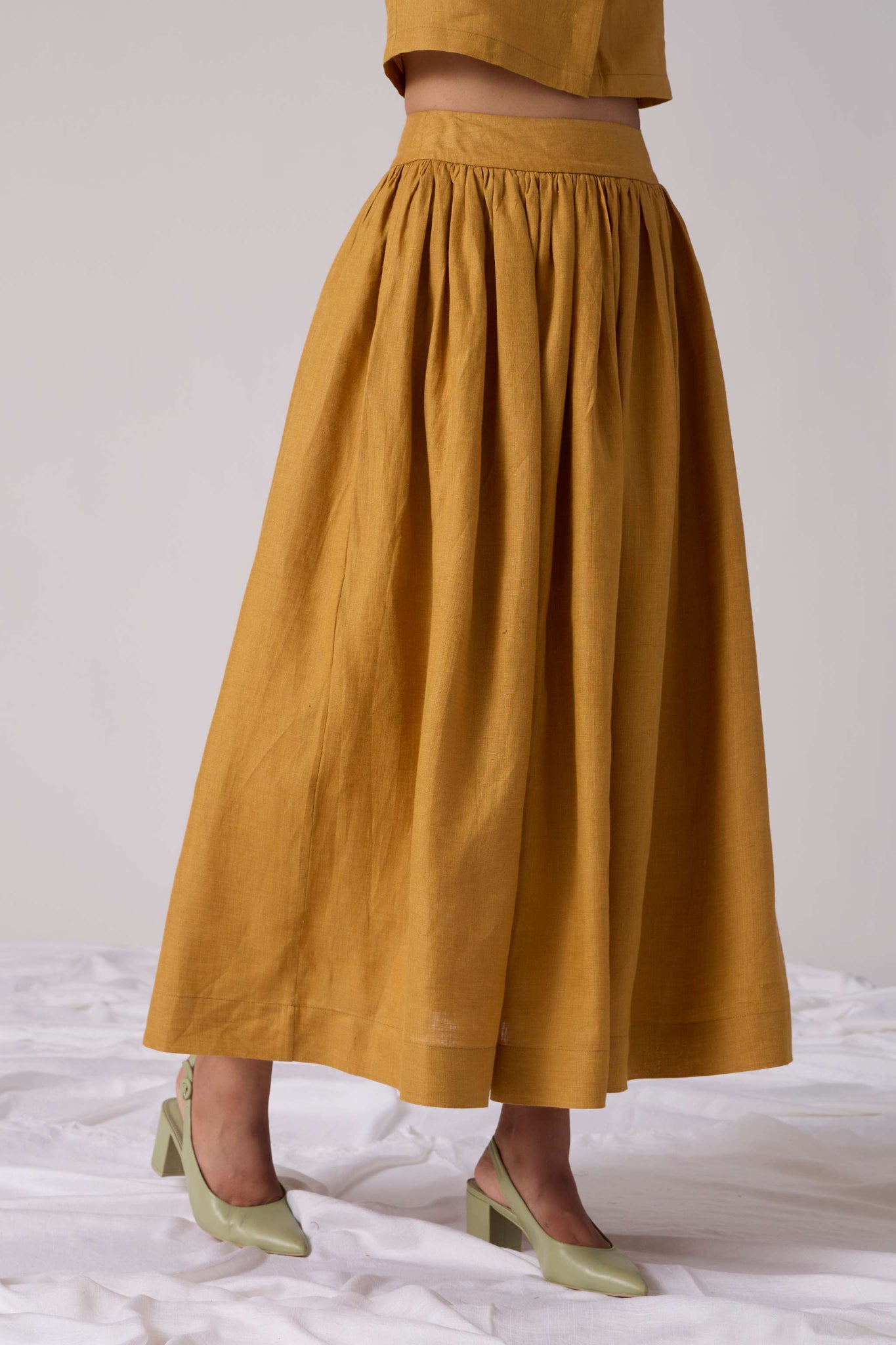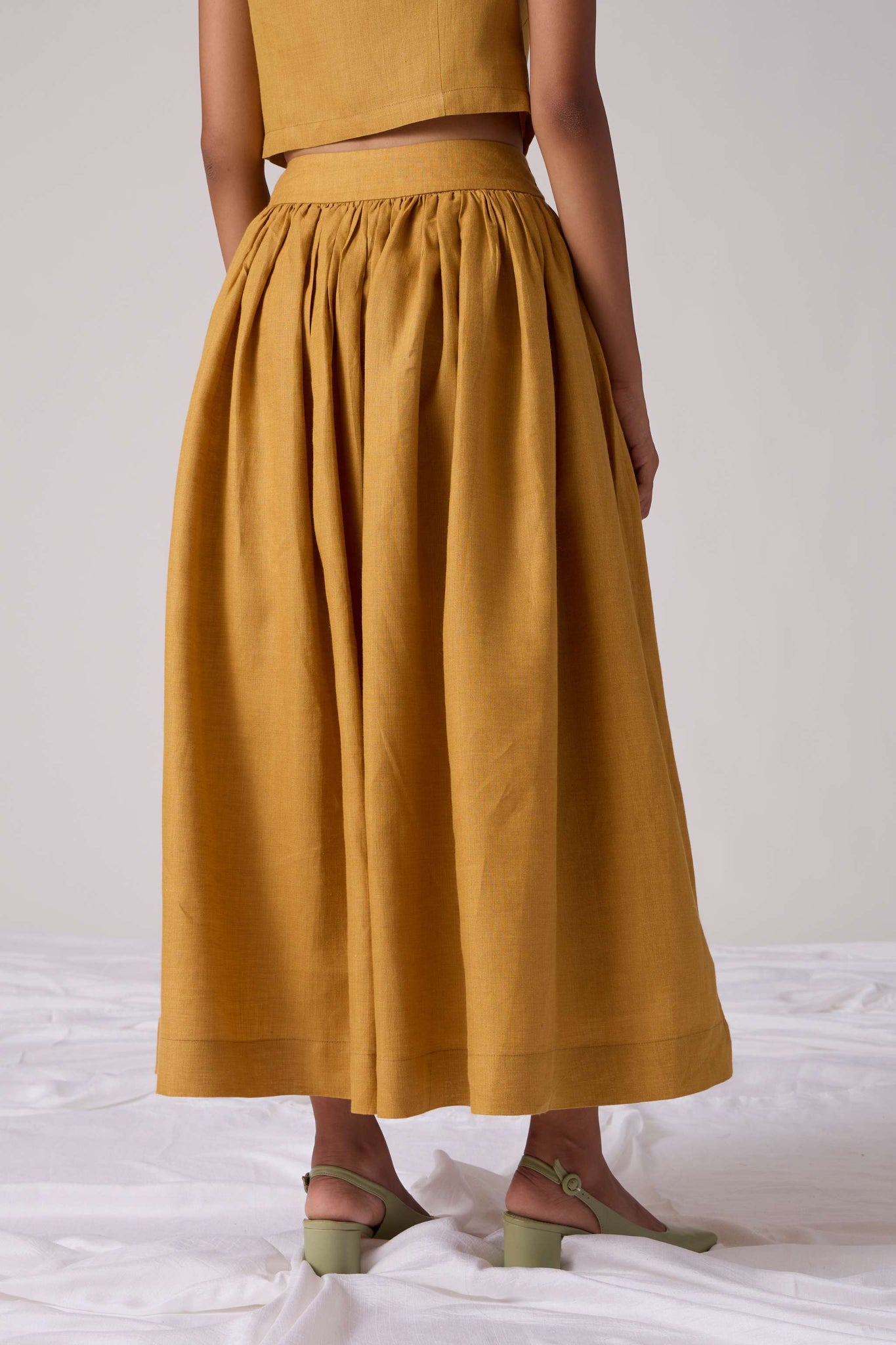 Elegant skirt to take you from daytime soirees to cocktail evenings. Premium cotton quality. Side zip fastening with gentle gathers around the waist. In-seam pockets.