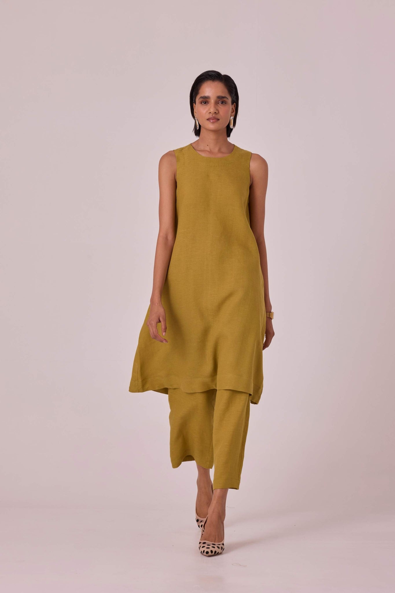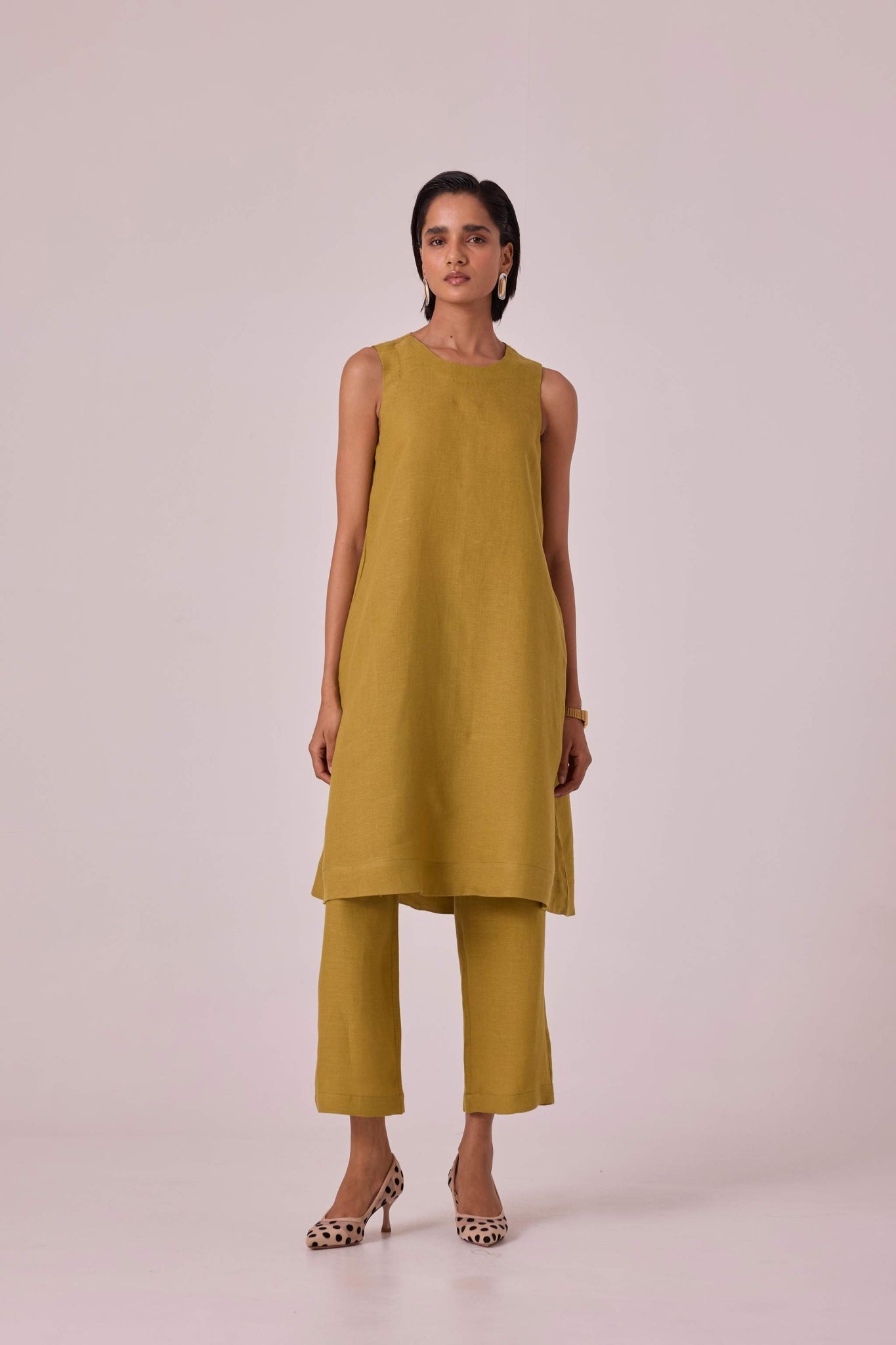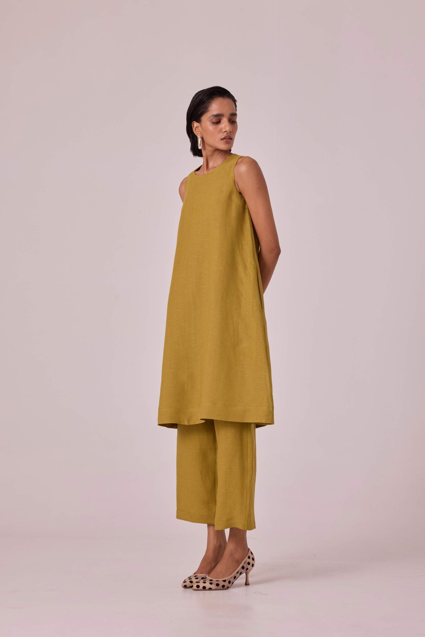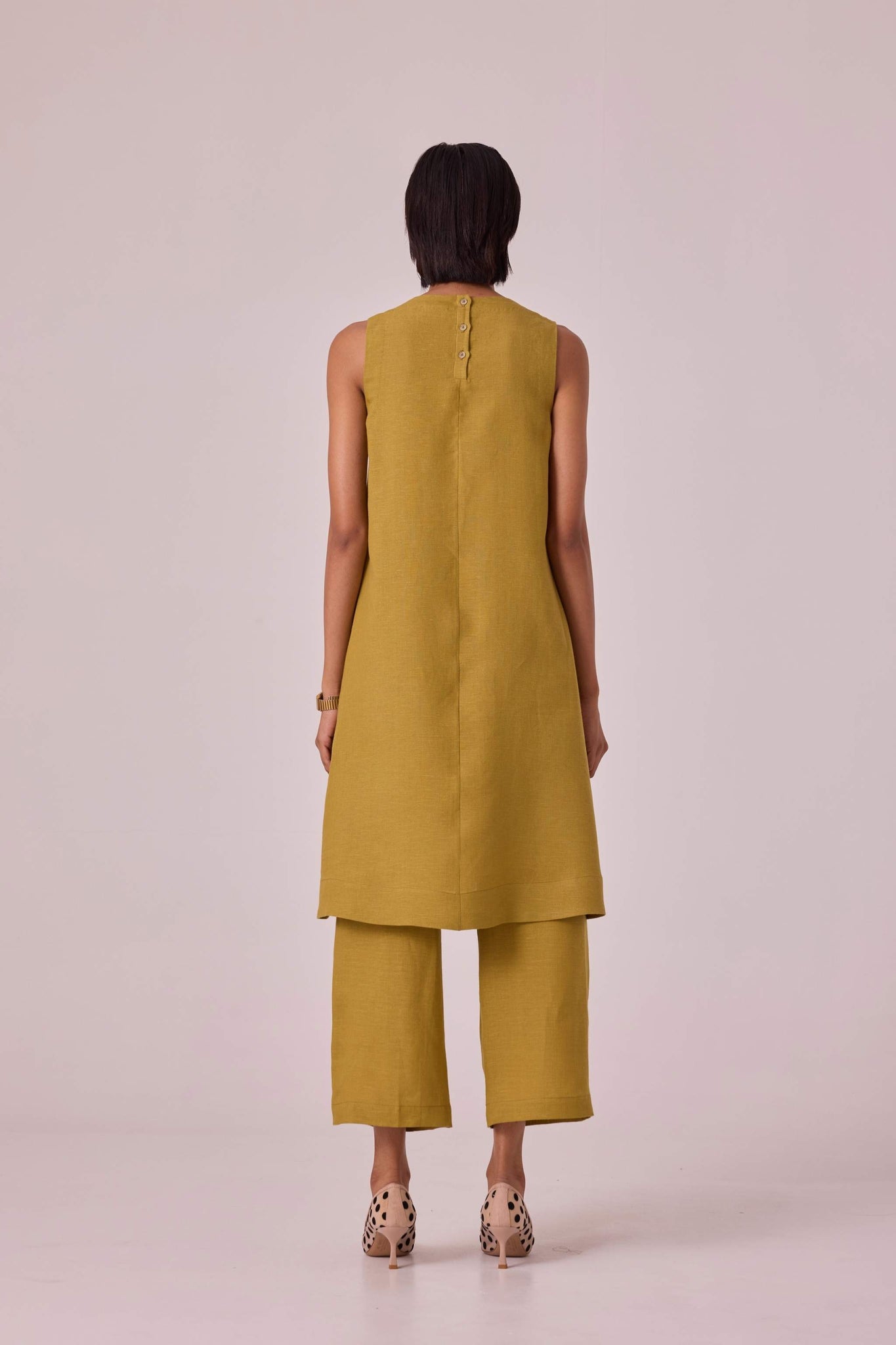 Simple and elegant. An effortless co-ord set featuring a sophisticated neckline and in-seam pockets. The top has button fastening at the back for better fit. Paired with matching pants elasticated at the waist.
