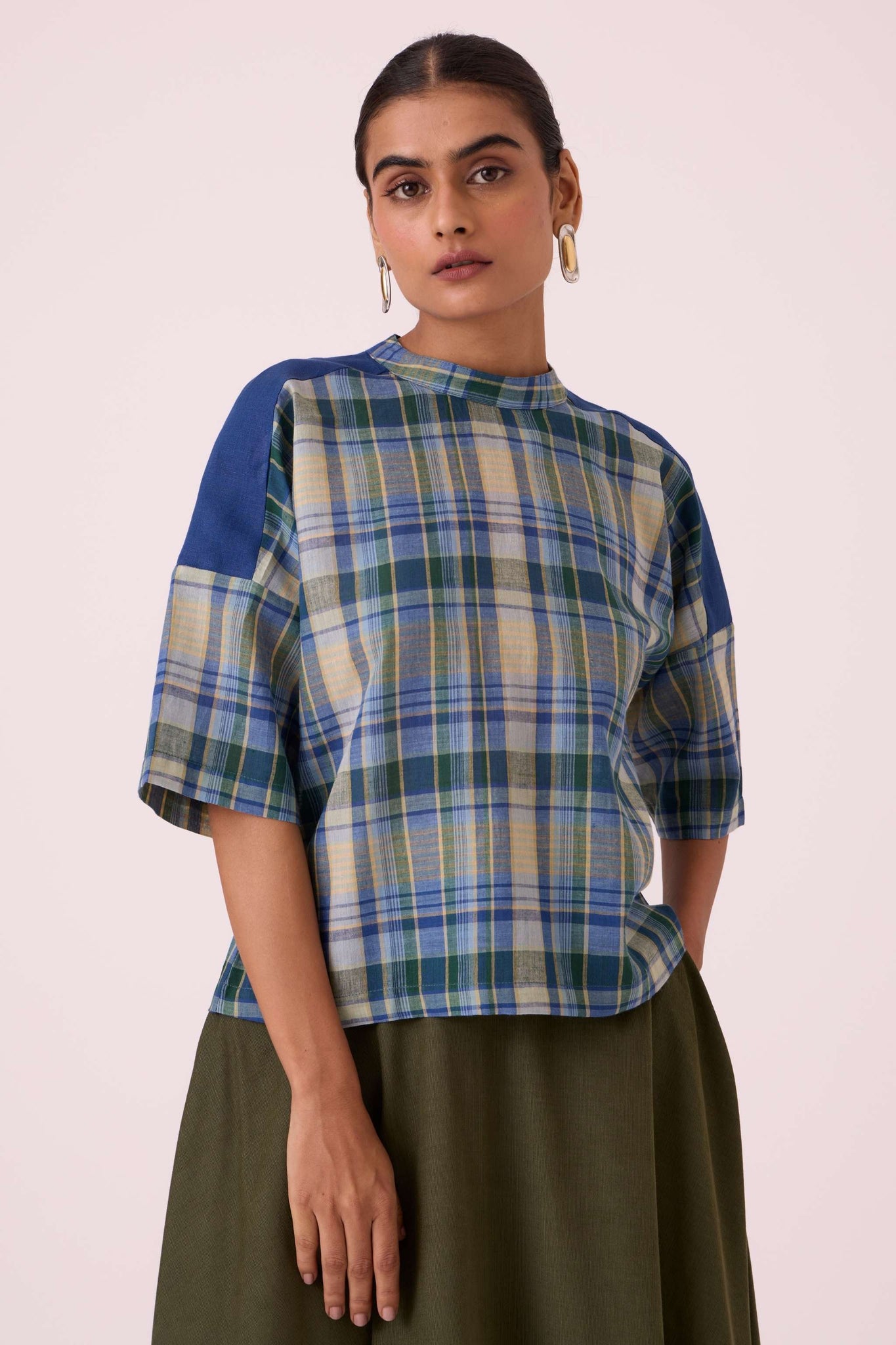 - Drop shoulder top with elbow length sleeve
