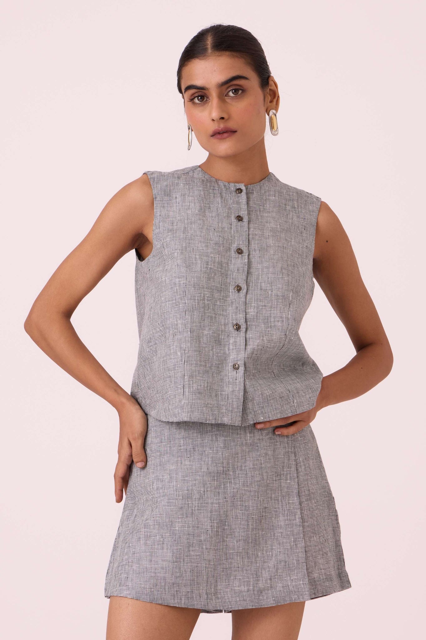 Wotton Houndstooth Linen Top