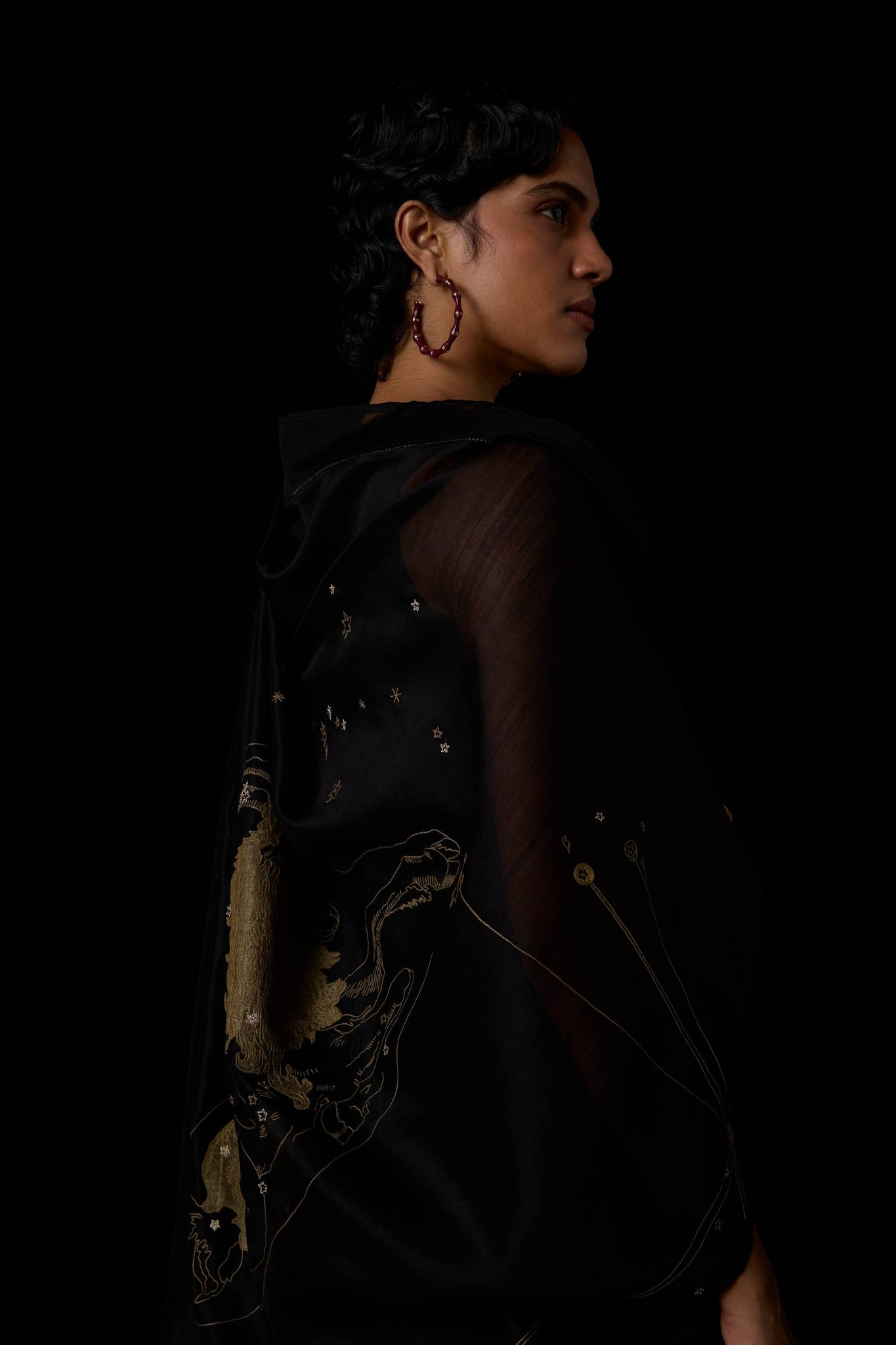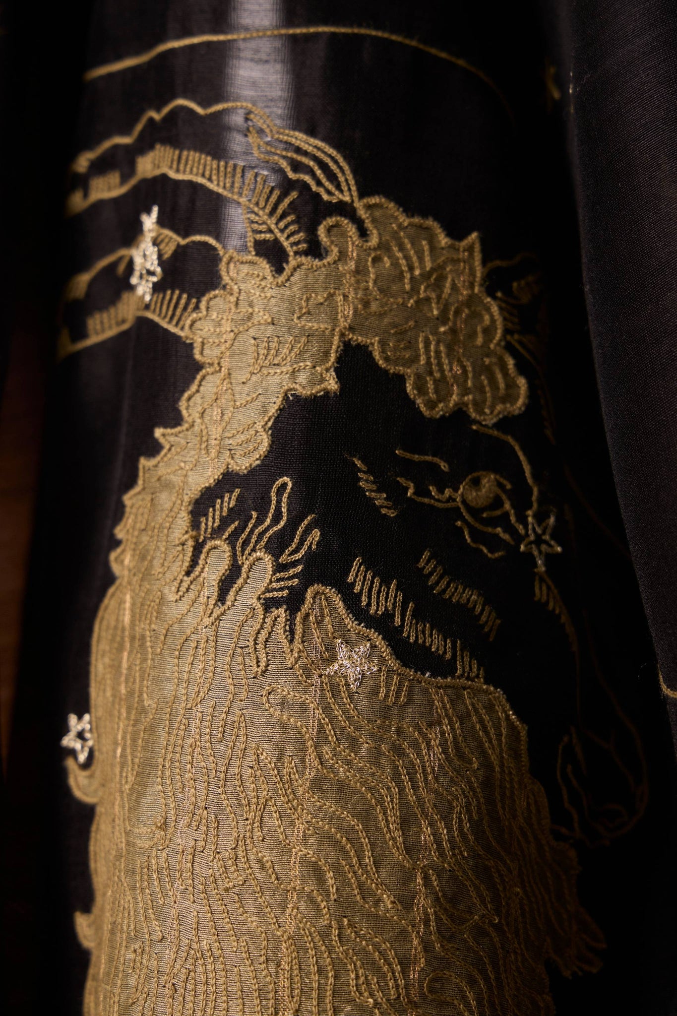 - Custom hand-embroidered zodiac motifs